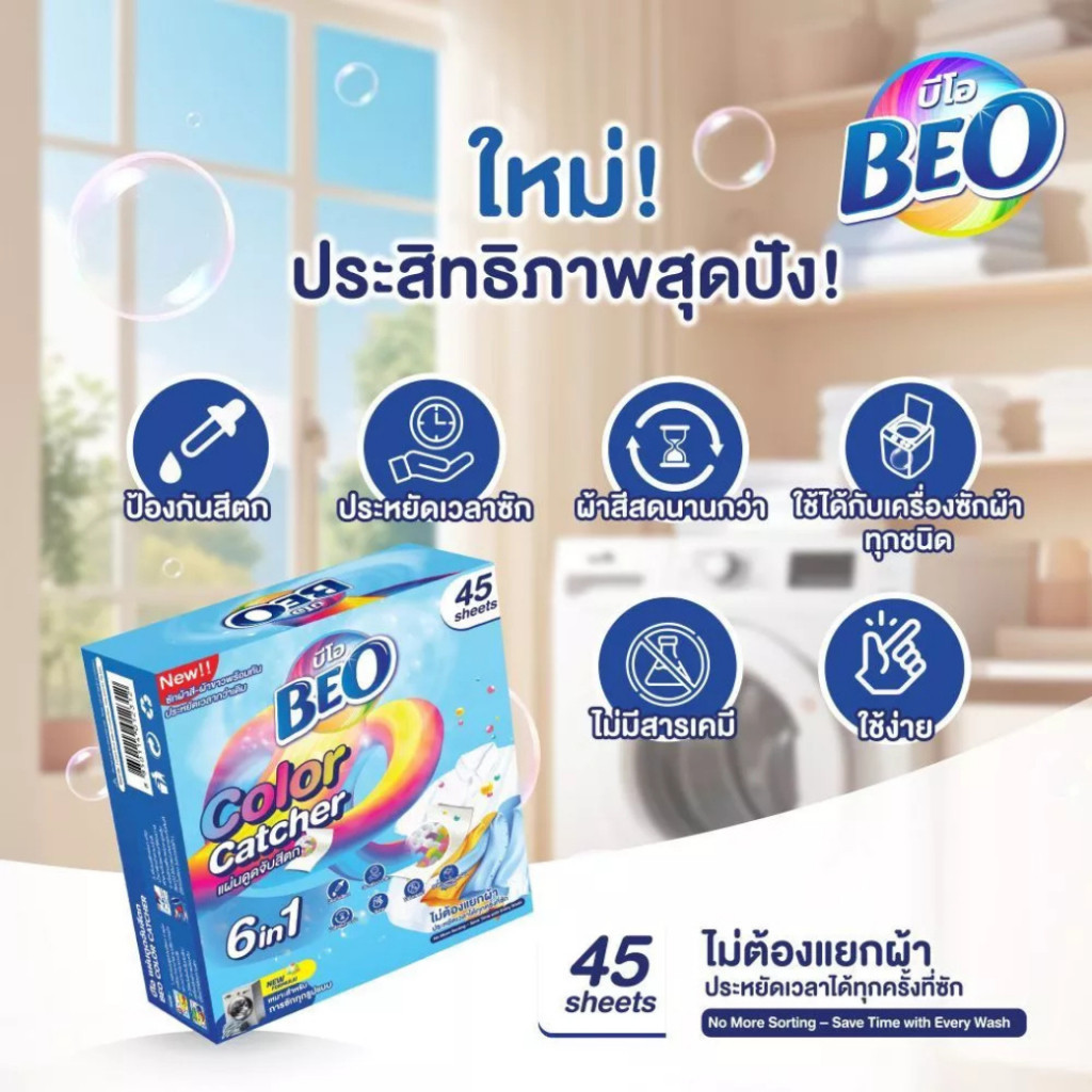 Beo Color Catcher บีโอ แผ่นดูดจับสีตก 1กล่อง 45 แผ่น
