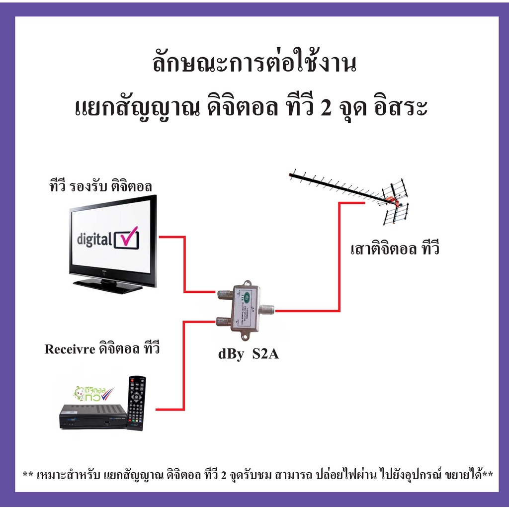 dBy Splitter Satellite All Port Power Pass 2-3-4 way ตัวขยายสัญญาณ 2 ทาง แบบเหล็ก รองรับทีวีดิจิตอล