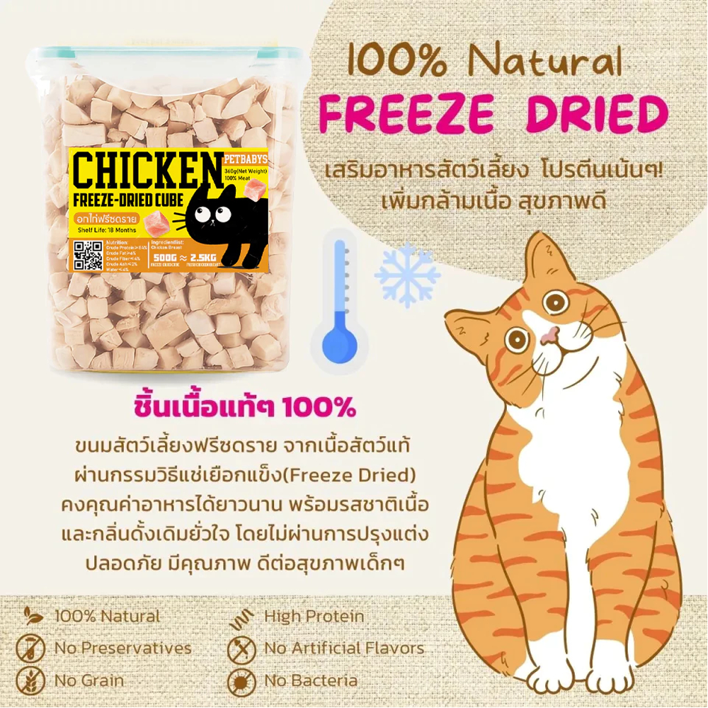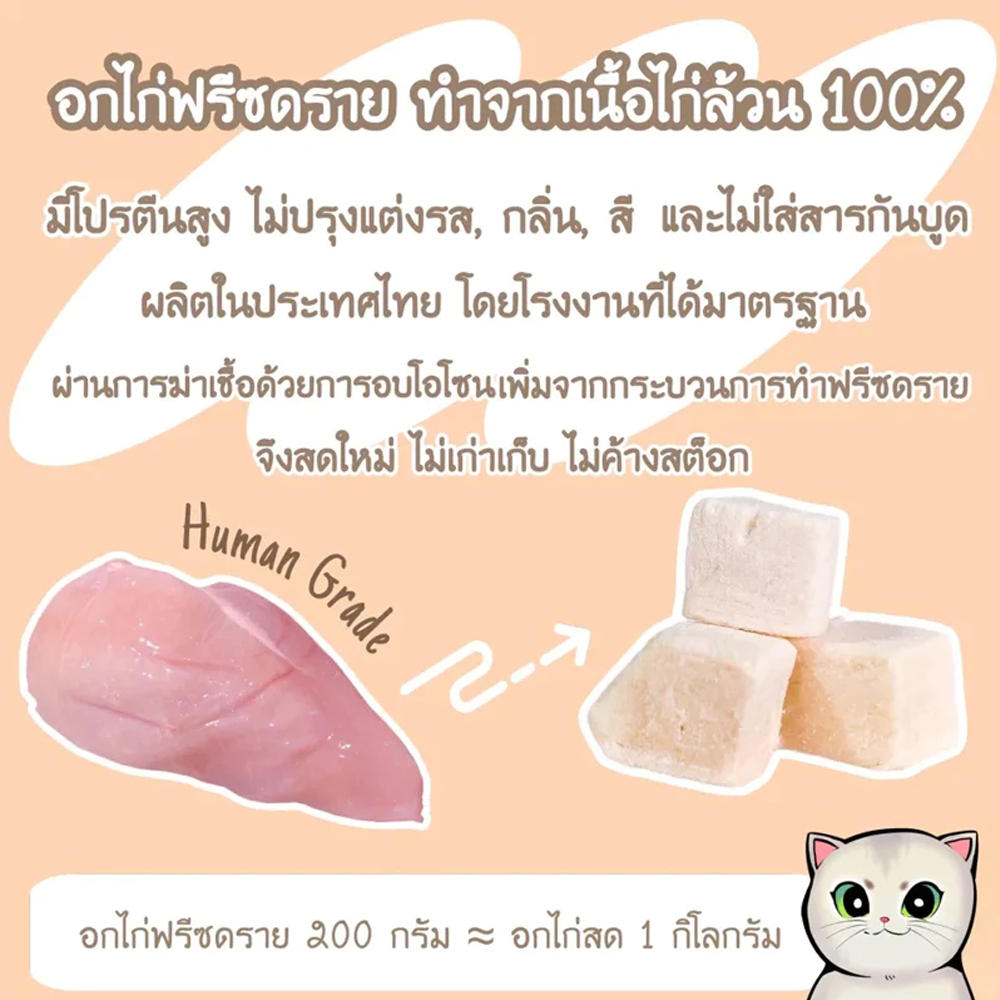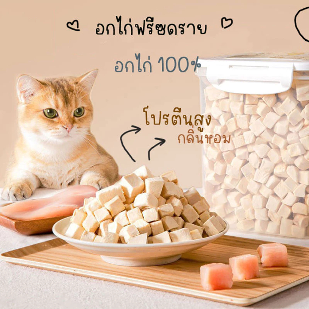 PETLUSCI อกไก่เต๋า อกไก่ฟรีซดราย 100% 640กรัม ฟู้ดเกรด ขนมแมว ขนมฟรีซดรายแมว ไก่ฟรีซดรายแมว