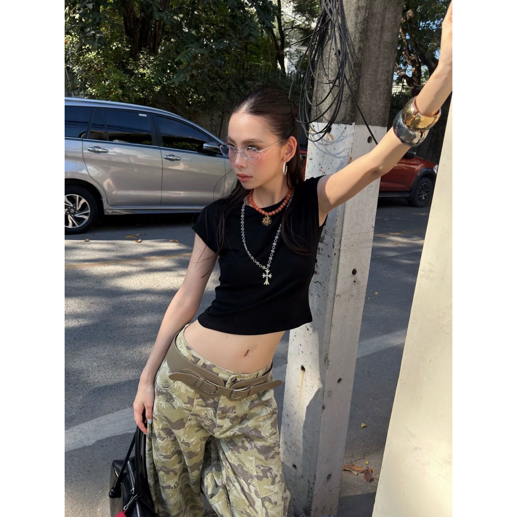 ส่งด่วน 🐳 #26T025 MMFISH 𝗝𝗨𝗡𝗢 𝗕𝗔𝗦𝗜𝗖 𝗦𝗧𝗥𝗘𝗘𝗧 𝗧𝗢𝗣 เสื้อยืดทรงครอปทรงสวยเข้ารูป ผ้ายืดใส่สบาย