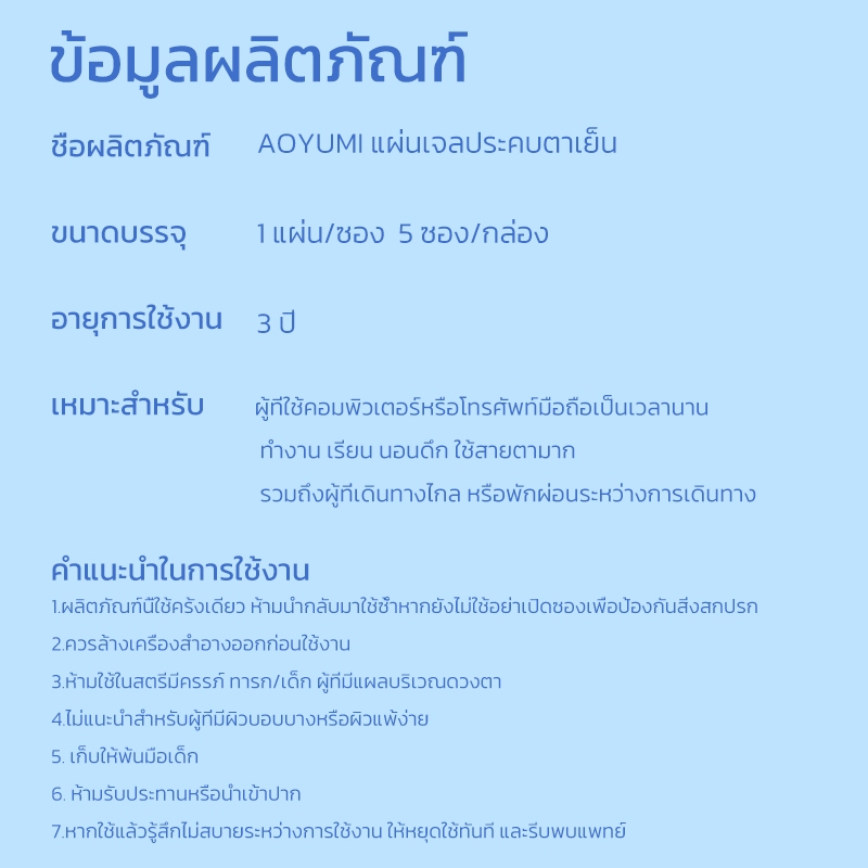 AOYUMI Long-Lasting Ice Sensation Moisturizing Eye Mask Eye Patch กรดไฮยาลูโรนิกเพิ่มเติมและ Lutein