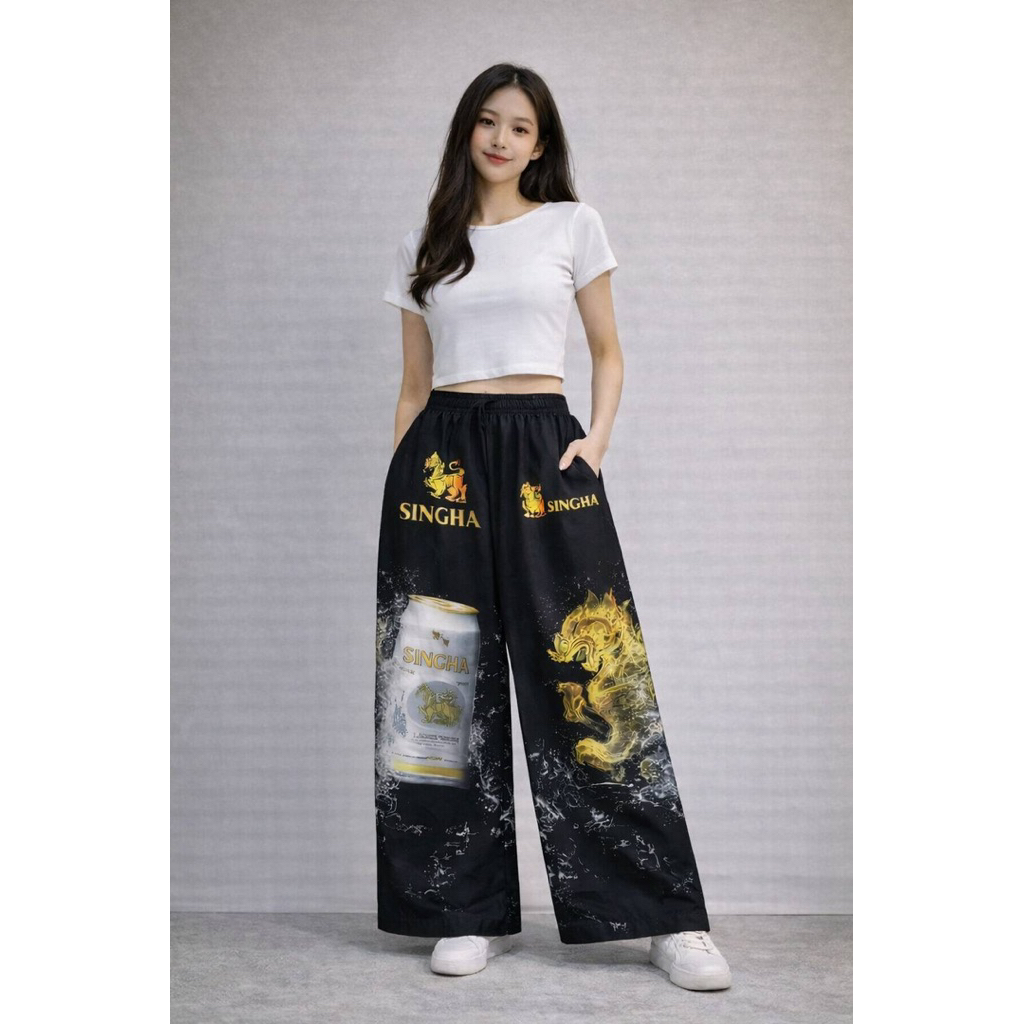 กางเกงแฟชั่น ผ้าไหมอิตาลี พิมพ์ลาย มี6ลายให้เลือก ทรงขากว้าง มีกระเป๋า2ข้าง มีเชือกผูกเอว ใส่ได้ทั้งชายและหญิง ใส่สบาย