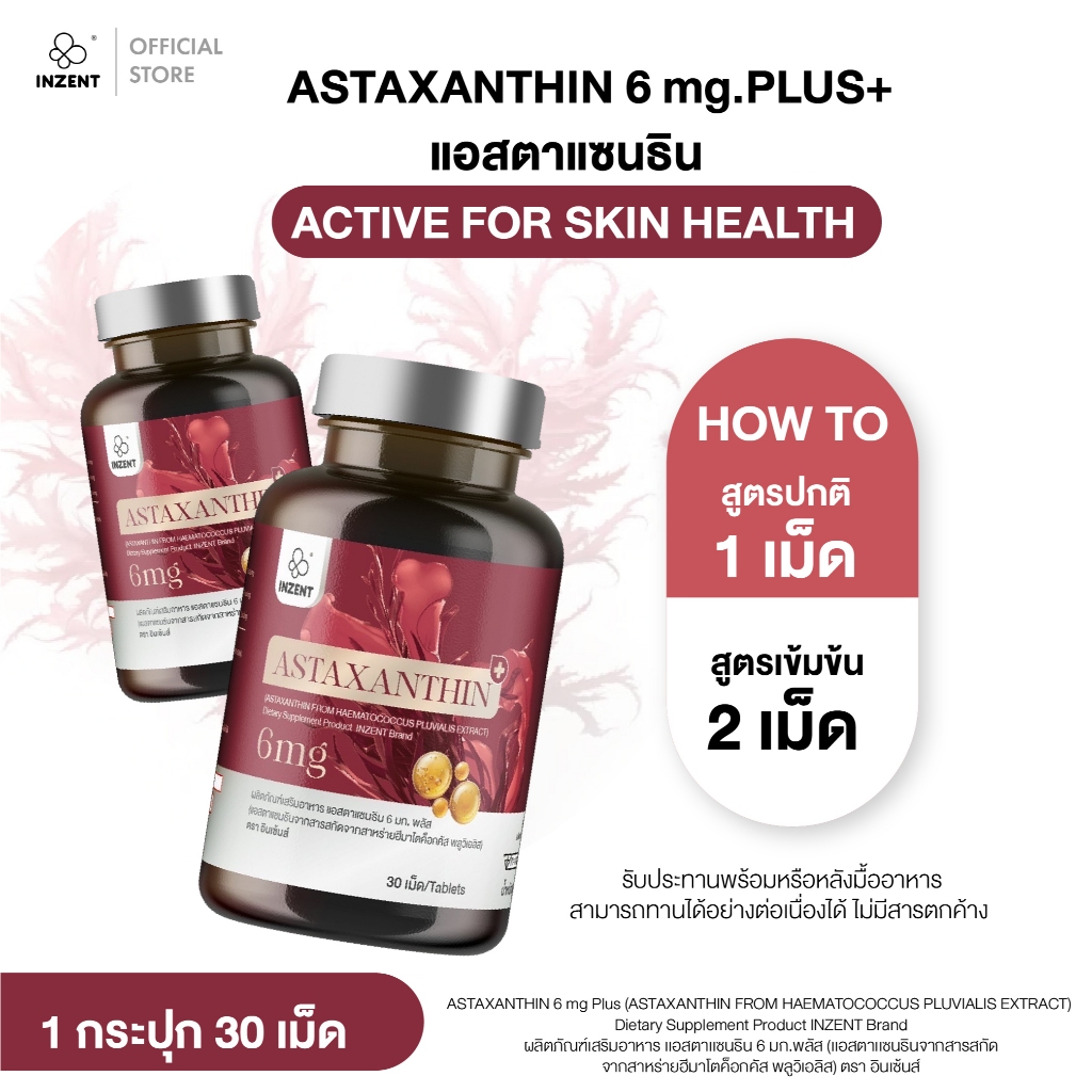[1แถม1] สูตรใหม่!Astaxanthin6mg plus+ แอสตาเเซนธิน 6 มก. ตราอินเซ้นส์[A44]