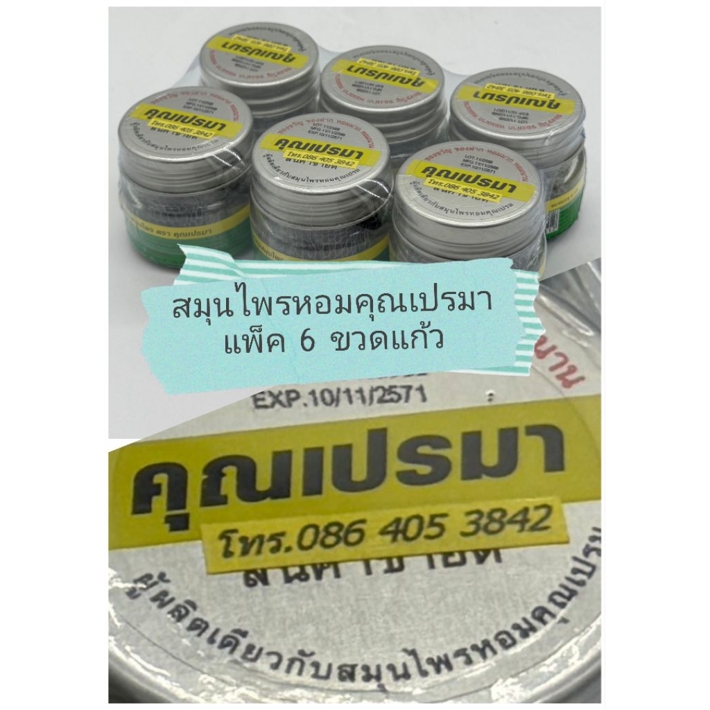 ยาดมสมุนไพรคุณเปรมาใช้สูดดมบรรจุขวดแก้ว#6ขวด