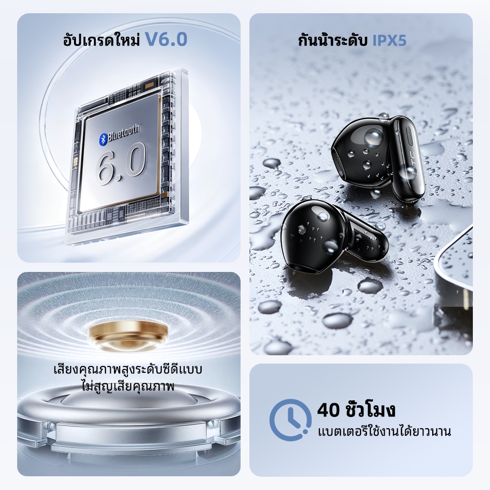 HTC NE68 หูฟังแปลภาษา บลูทูธ 6.0 แปลภาษาแบบเรียลไทม์ หน้าจออัจฉริยะ LED กันน้ำระดับ IPX4 หูฟังไร้สายเสียง HiFi ใช้ได้กับ iOS Android PC