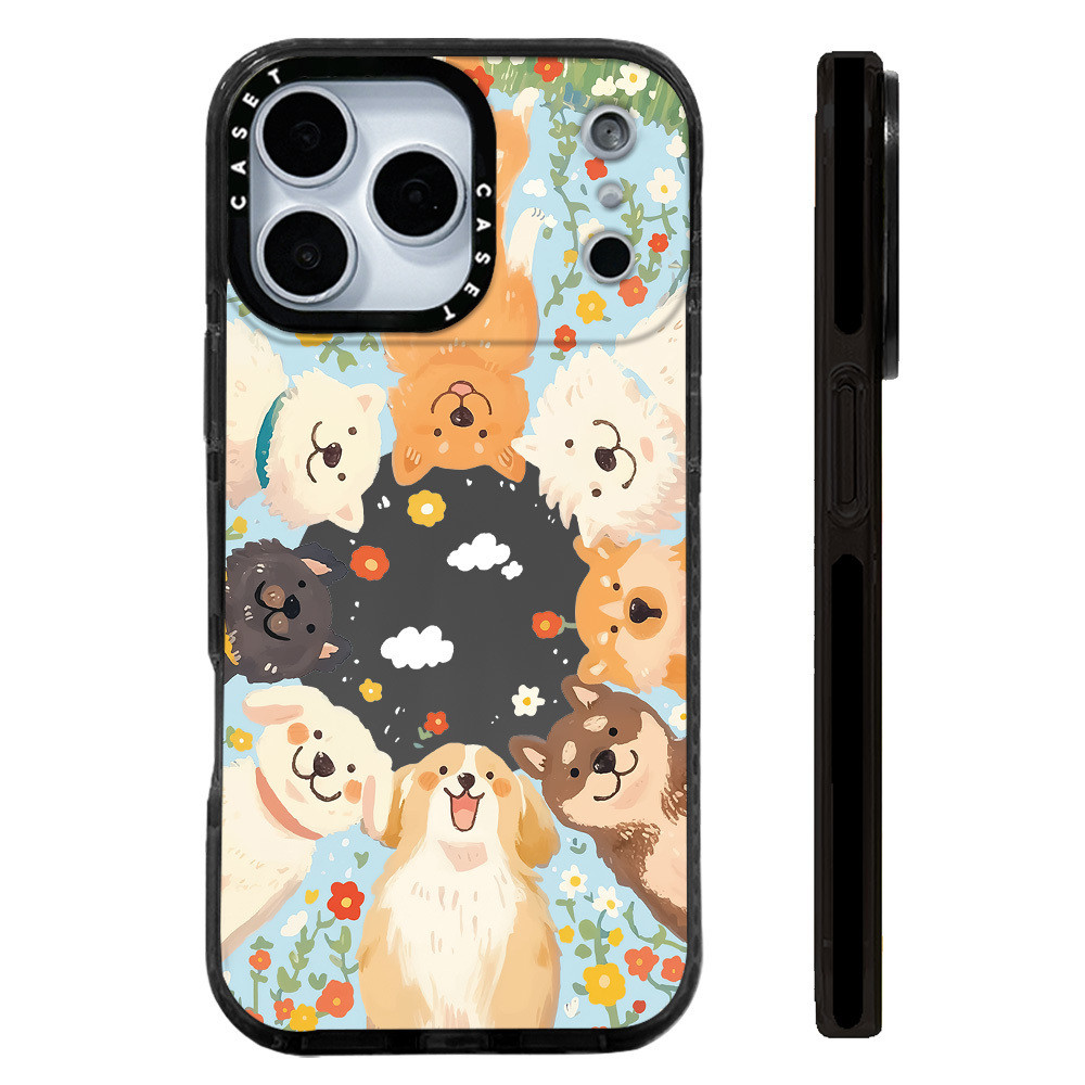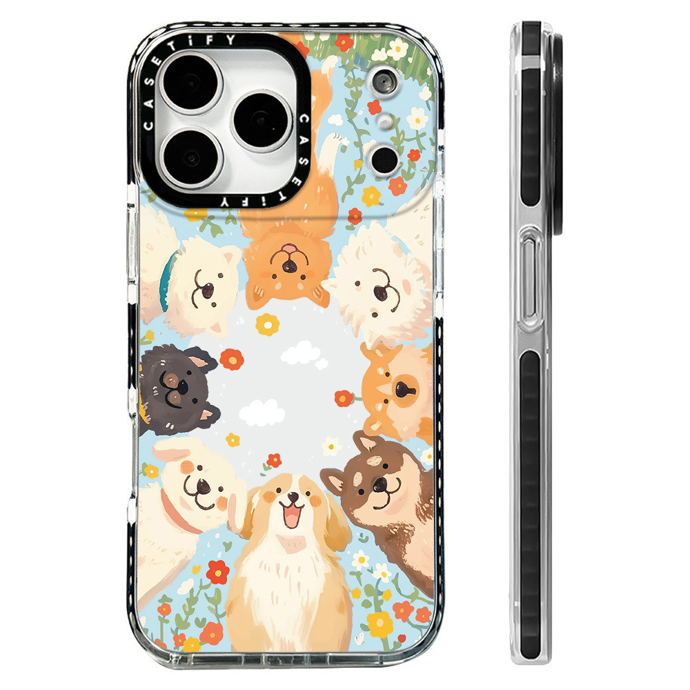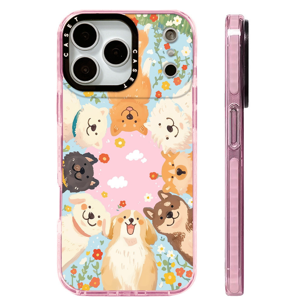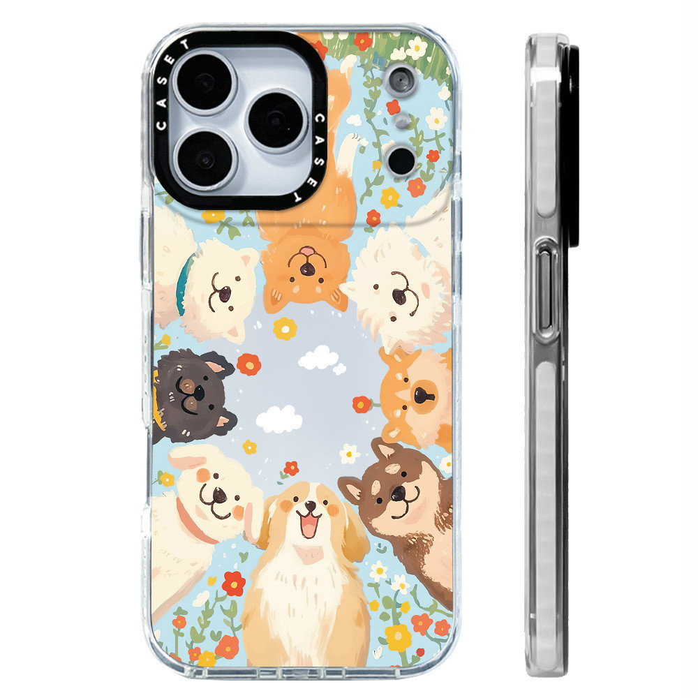 ลูกสุนัขน่ารักดอกไม้ล้อมรอบกรณีเข้ากันได้สําหรับ ไอโฟน 11 12 13 15 14 16 17 มือโปร สูงสุด 12 มินิปก X เอ็กซ์อาร์ XS สูงสุด ซิลิโคนนุ่มกันชนใส กับ 2022 6 7 8 บวกกันกระแท
