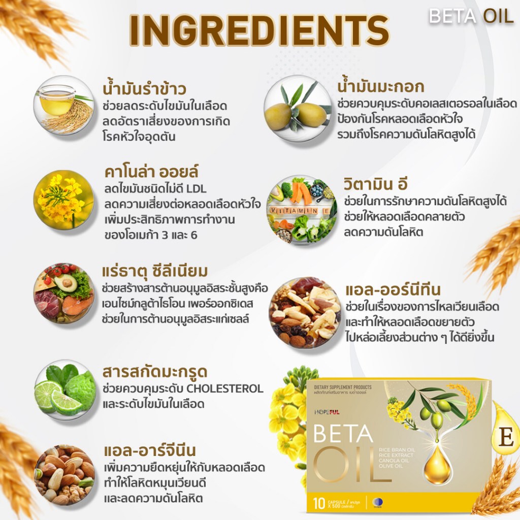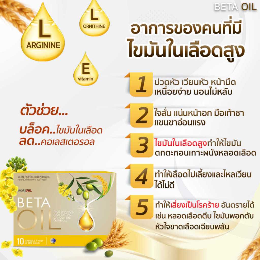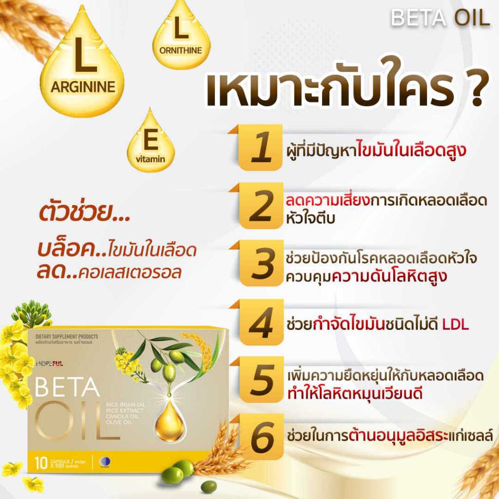 BETA OIL (เบต้าออยล์) 1กล่อง อาหารเสริมไขมันดี ลดความดัน บำรุงหัวใจ