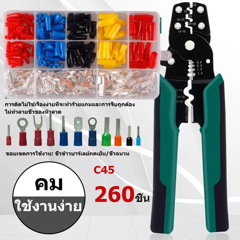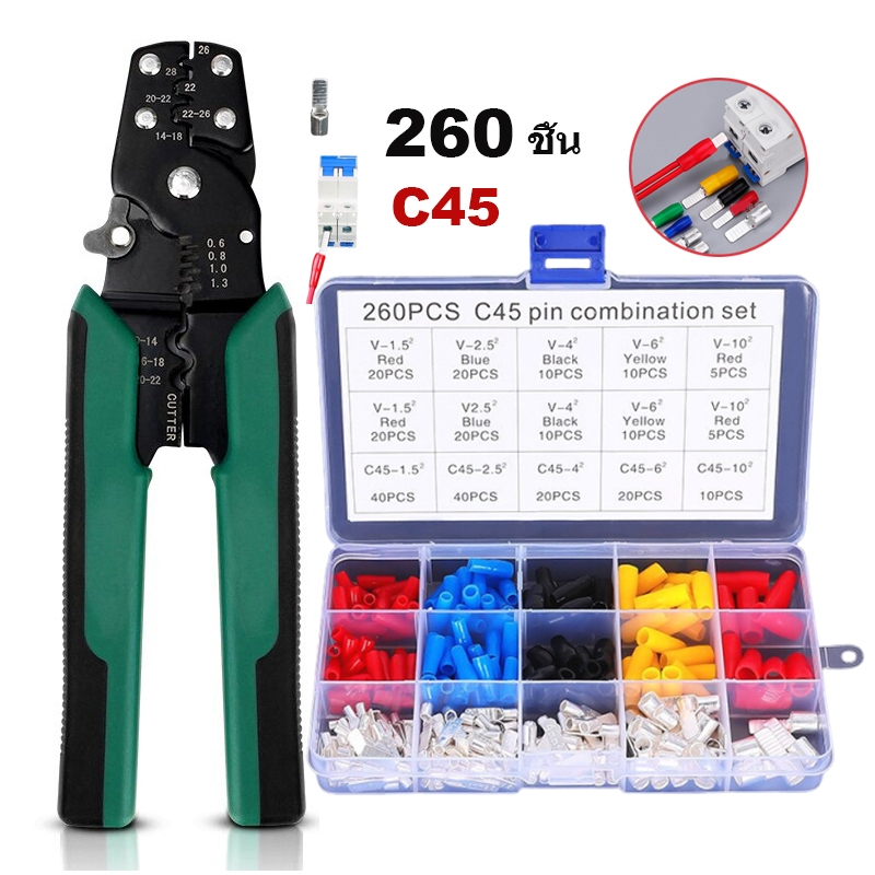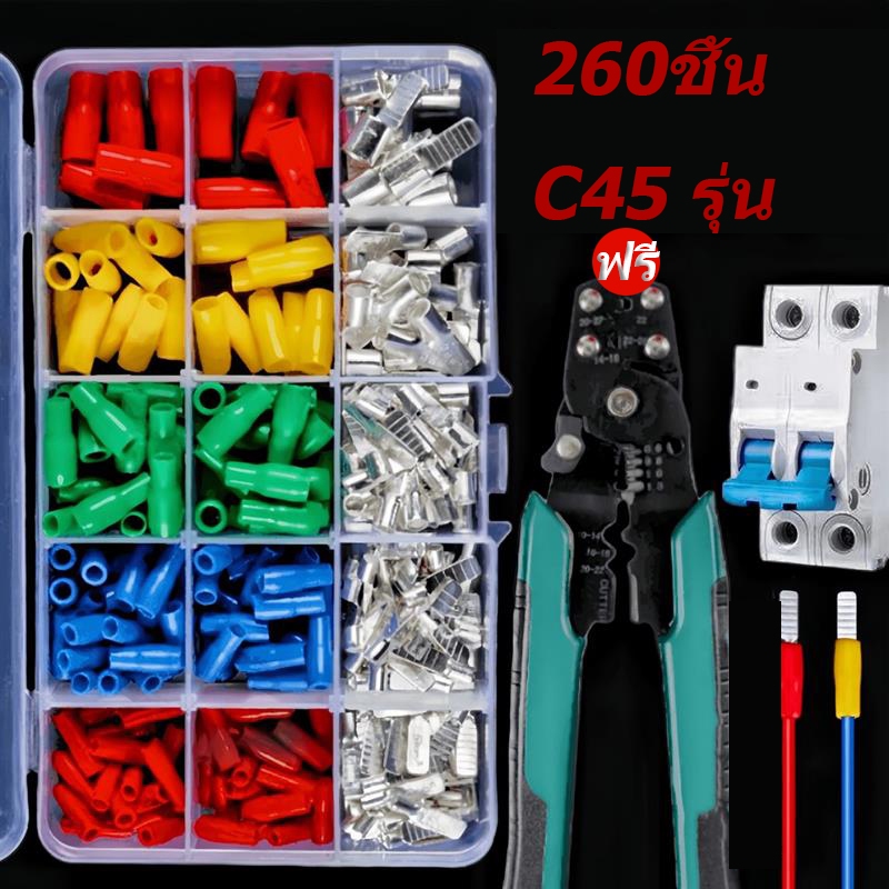 260ชิ้น ชุดหางปลาต่อเบรกเกอร์ C45 ตรงรุ่น แน่นหนา พร้อมปลอกหุ้ม
