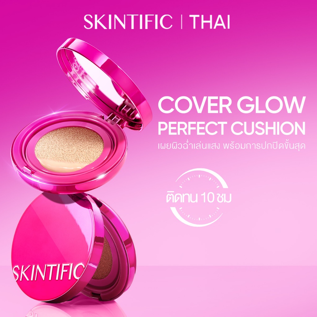 SKINTIFIC Cover Glow Perfect Cushion คุชชั่น โกลว์ 10 ชม ชุ่มชื้น เนียนไร้ที่ติ ไม่ออกซิไดซ์