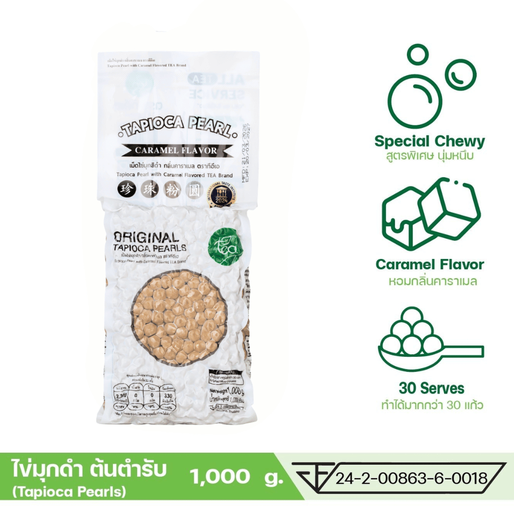 [แพ็ค 6 ถุง] ไข่มุกดำ 1 kg เม็ดไข่มุกดิบ กลิ่นคาราเมล ชานมไข่มุก ไข่มุกไต้หวัน เม็ดไข่มุกดำ Bubble Tea Pearl ท๊อปปิ้ง...