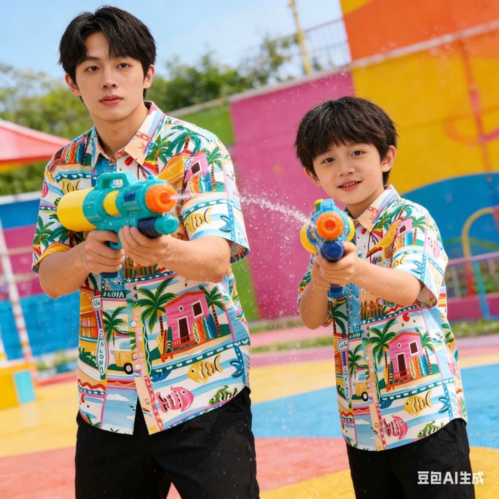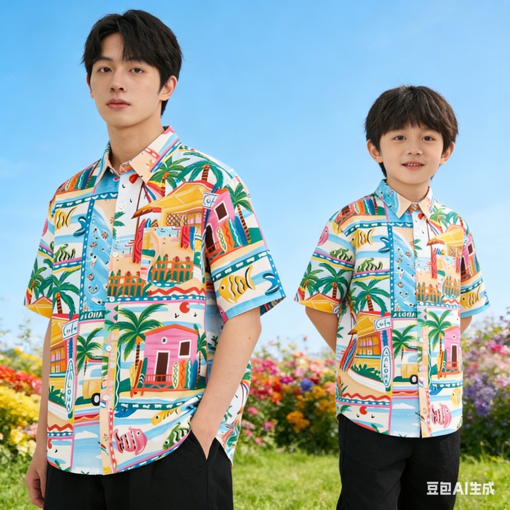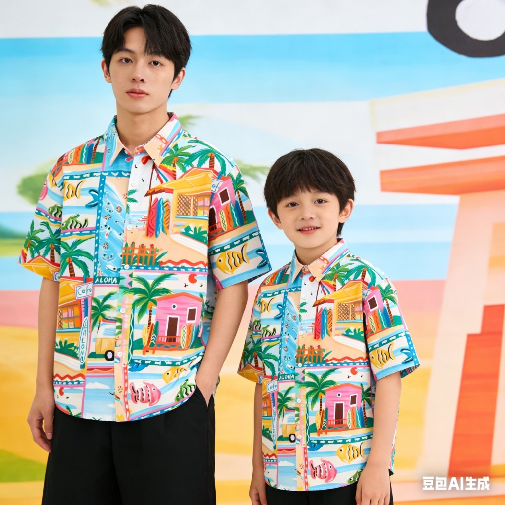 เสื้อเชิ้ตคู่พ่อ-ลูก ใส่เที่ยวทะเล ลายซัมเมอร์สีสดใส ใส่เที่ยว ใส่สบาย