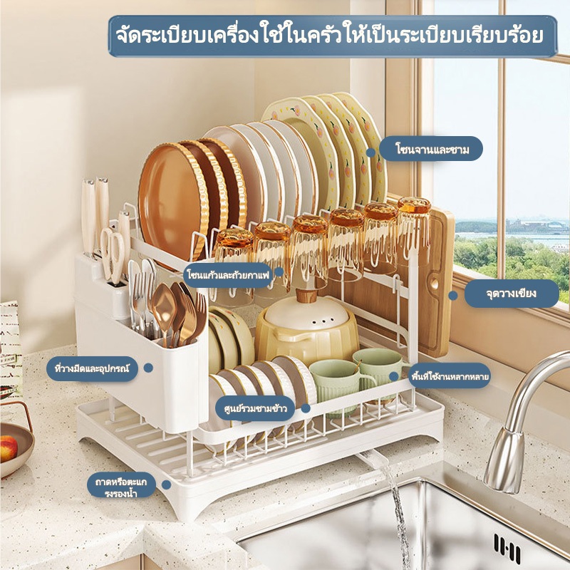 NorthMarch 【COD】ชั้นวางจาน 2ชั้น วัสดุสแตนเลส สามารถเก็บถ้วยได้ สีดำ/สีขาว แข็งแรงและทนทาน