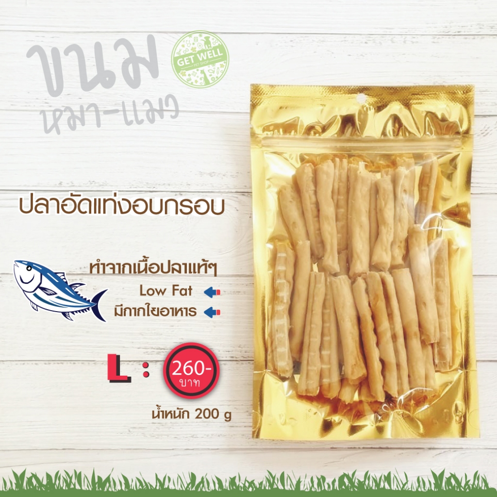 Get Well ปลานิลอัดแท่ง อบกรอบ ขนมหมา ไม่ปรุงรส แพ้ไก่กินได้ แพ้แป้งกินได้