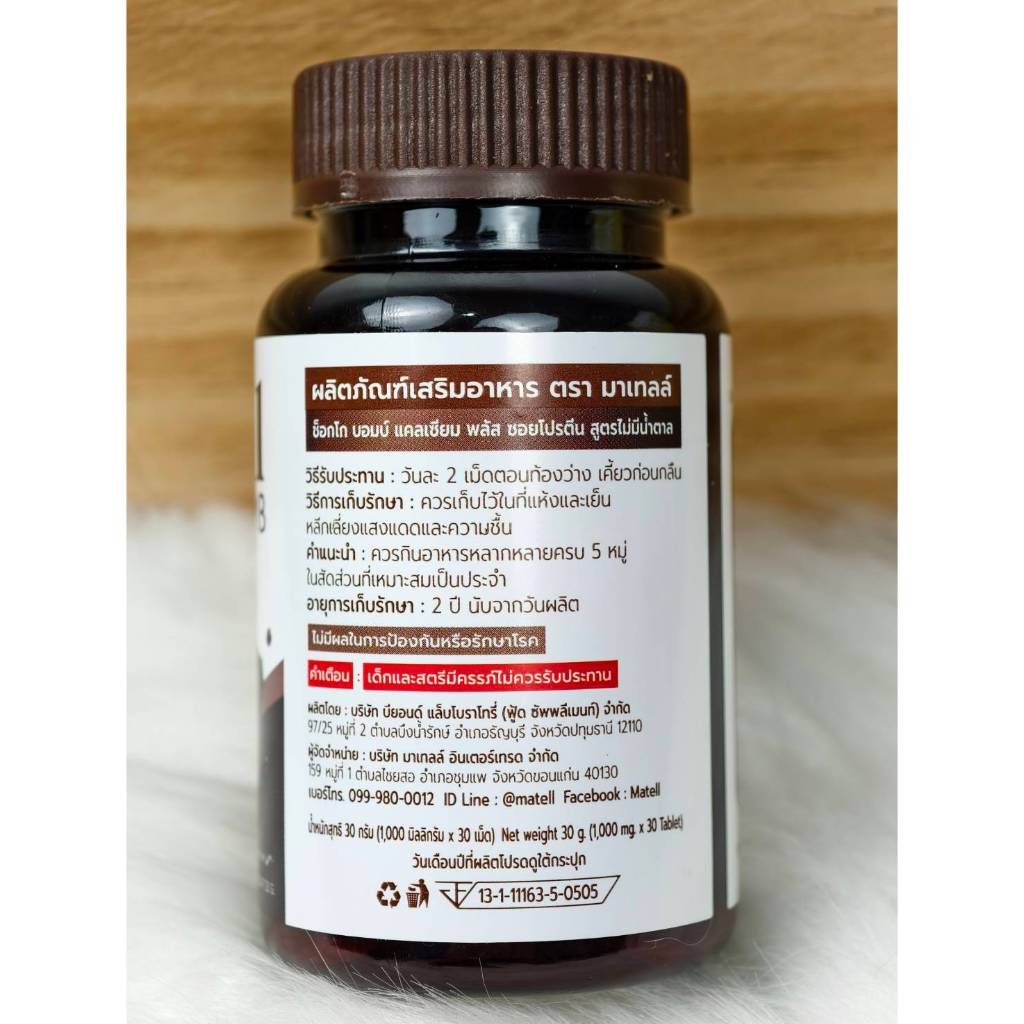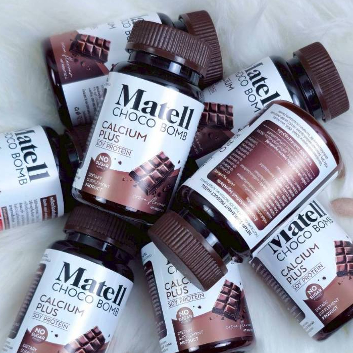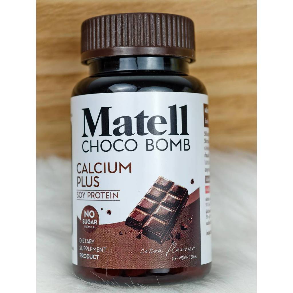 แคลเซียม MATELL Choco Bomb+Soy Protein ไม่ผสมนมวัว ไม่มีน้ำตาล [ 1 กระปุก 30 เม็ด ]
