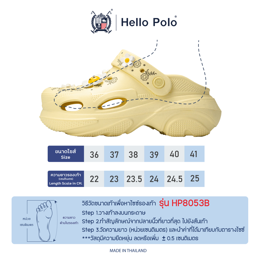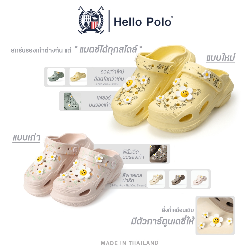 Hello Polo รุ่น HP8053B รองเท้าหัวโต รองเท้าแฟชั่น EVA ลายดอกไม้เดซี่ นุ่มเบา ใส่สบาย สไตล์มินิมอล