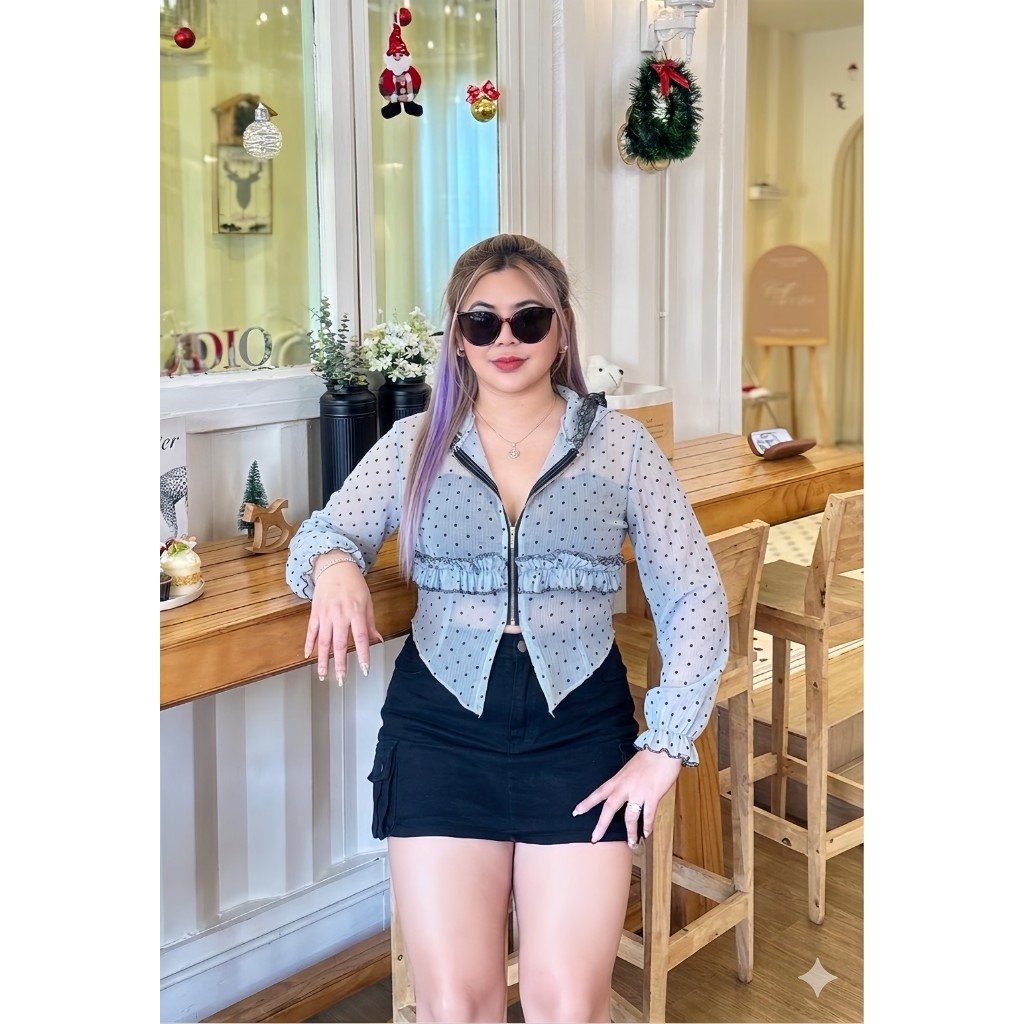 เสื้อฮู้ดโรซี่ งาน 2 ชิ้น มีสายเดี่ยวด้านในแต่งซิปขอบลูกไม้