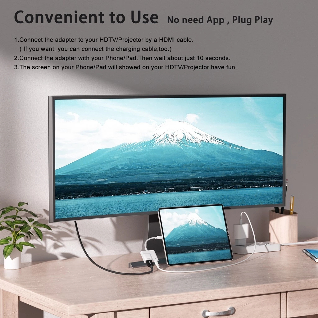 โอนสาย เชื่อมโยง เส้นข้อมูล HD 1080P TV L To HDMI สายแปลง Li to HDMI 1080P หน้าจอแคสต์ HD