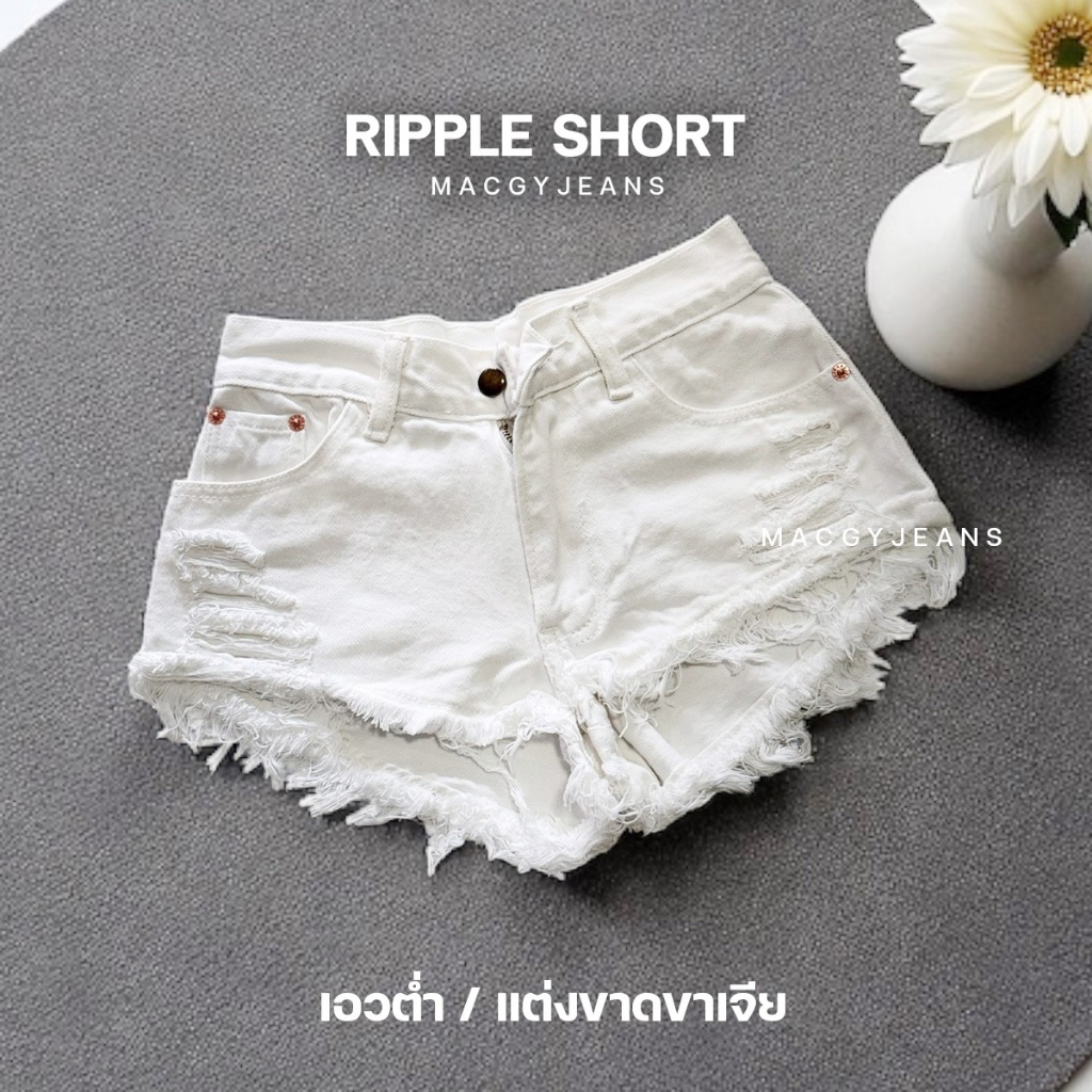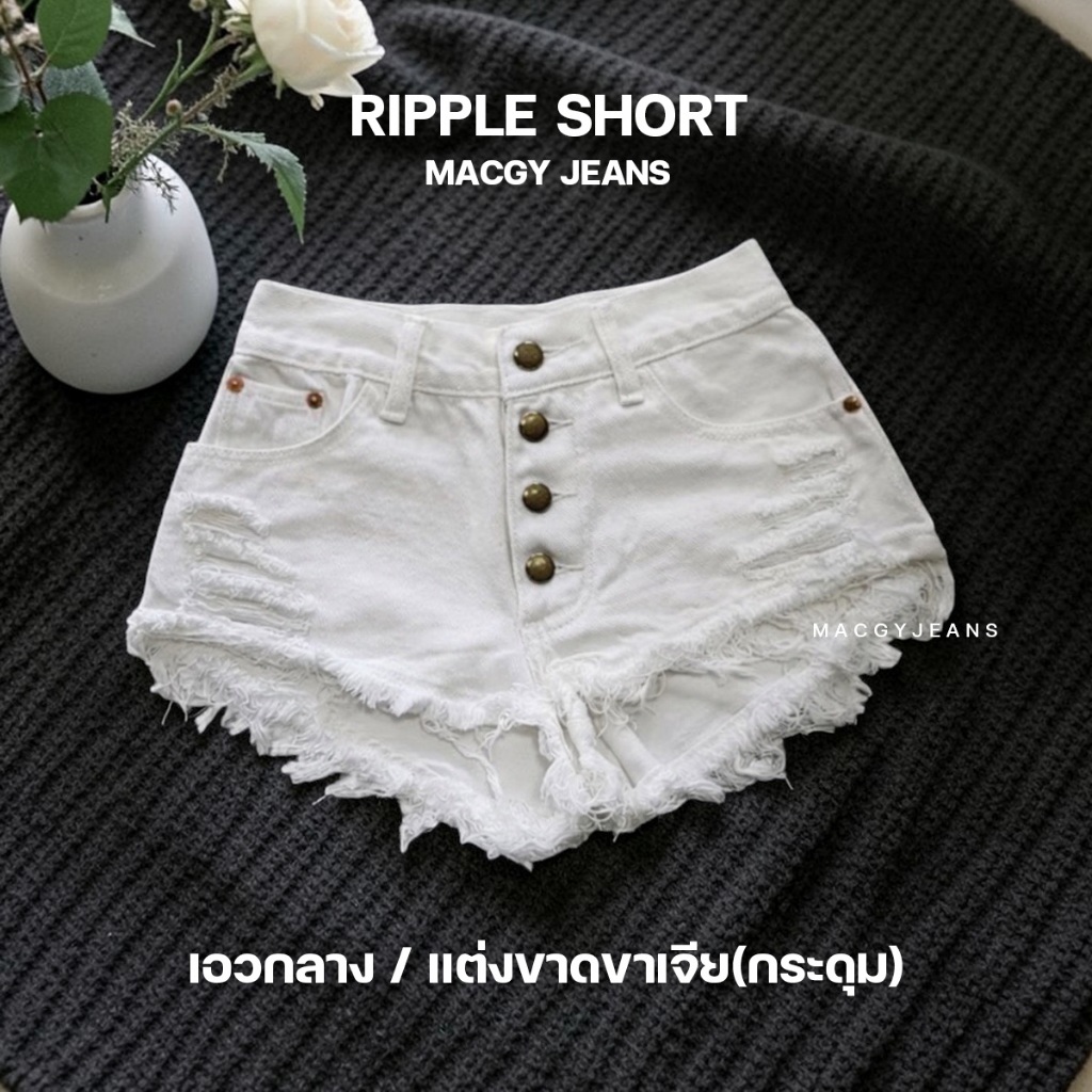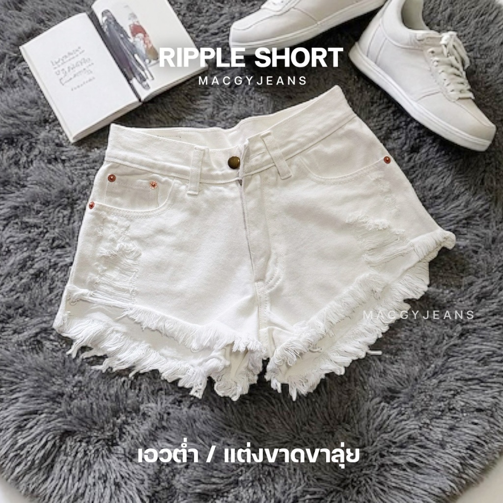 🌟3 แบบ🌟 กางเกงยีนส์ขาสั้นสีขาวแต่งขาด White Collection รุ่นขายดี (ผ้าไม่ยืด)