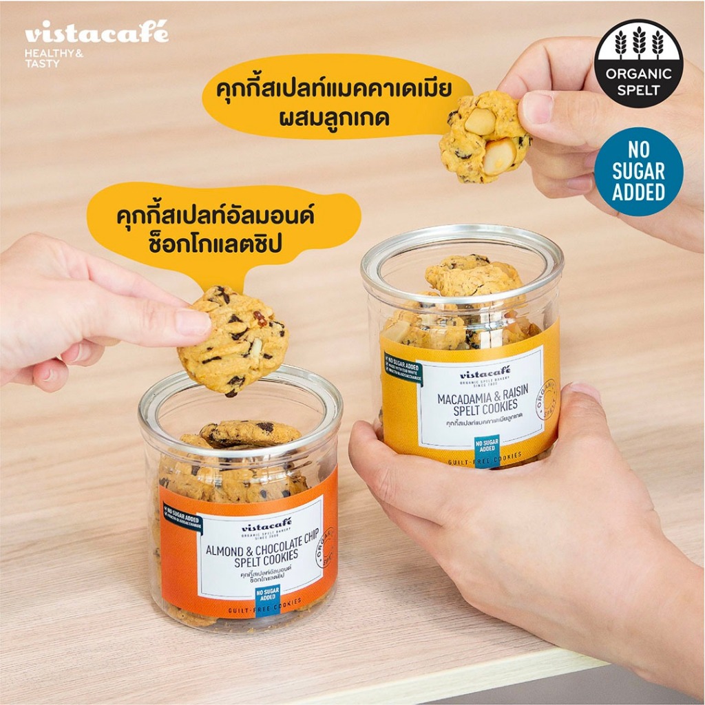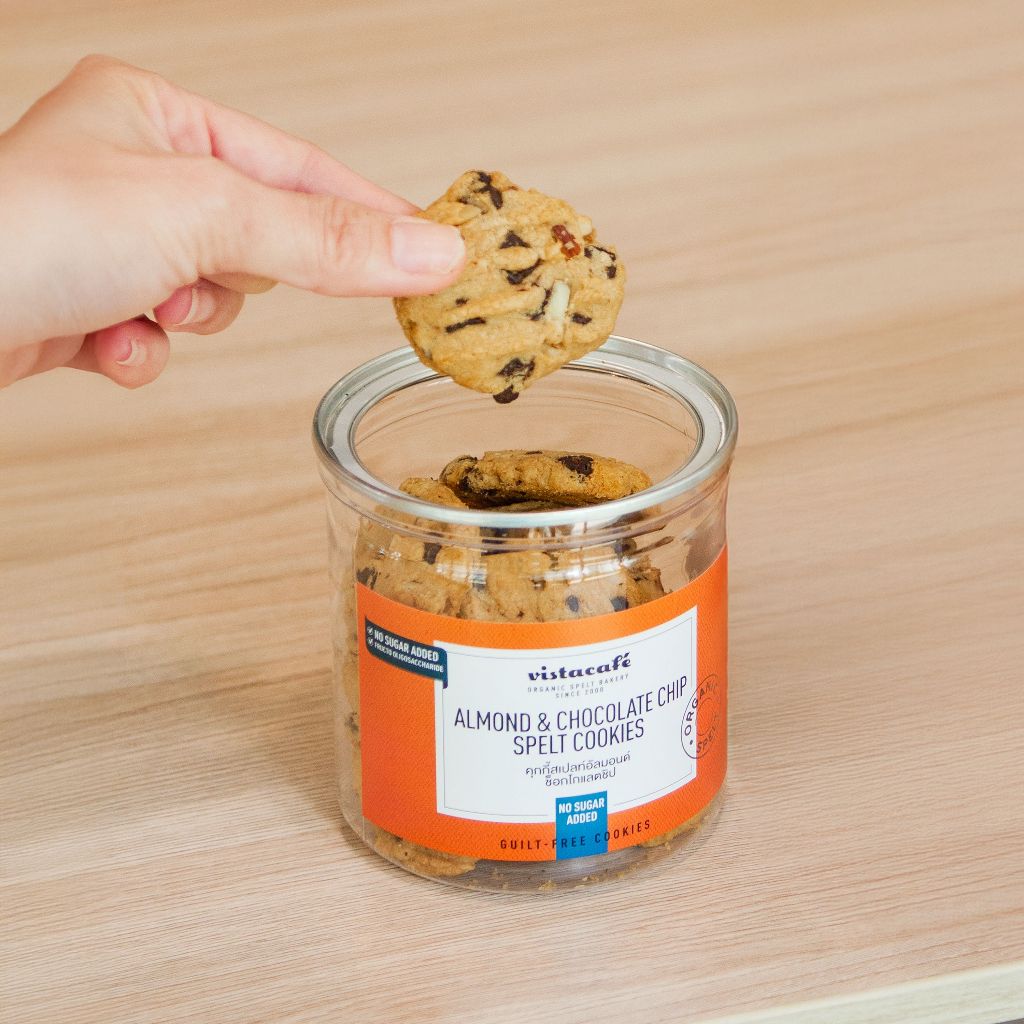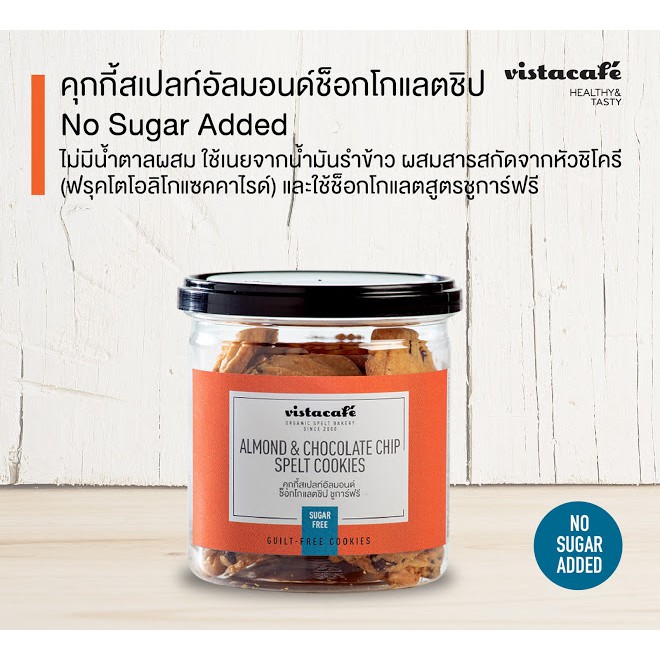 [No Sugar Added] วิสต้าคาเฟ่ คุกกี้สเปลท์ช็อกโกแลตชิปผสมอัลมอนด์ ปราศจากน้ำตาล หวานจากหล่อฮังก๊วย Vista Cafe