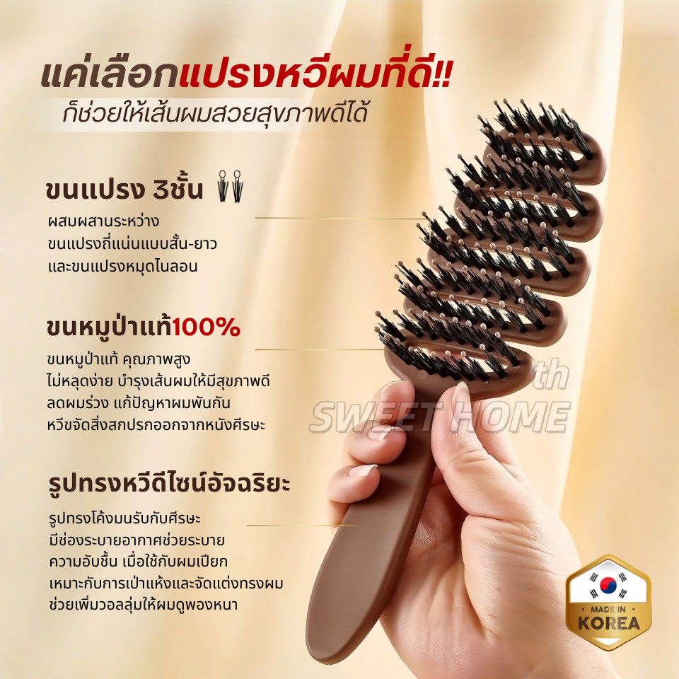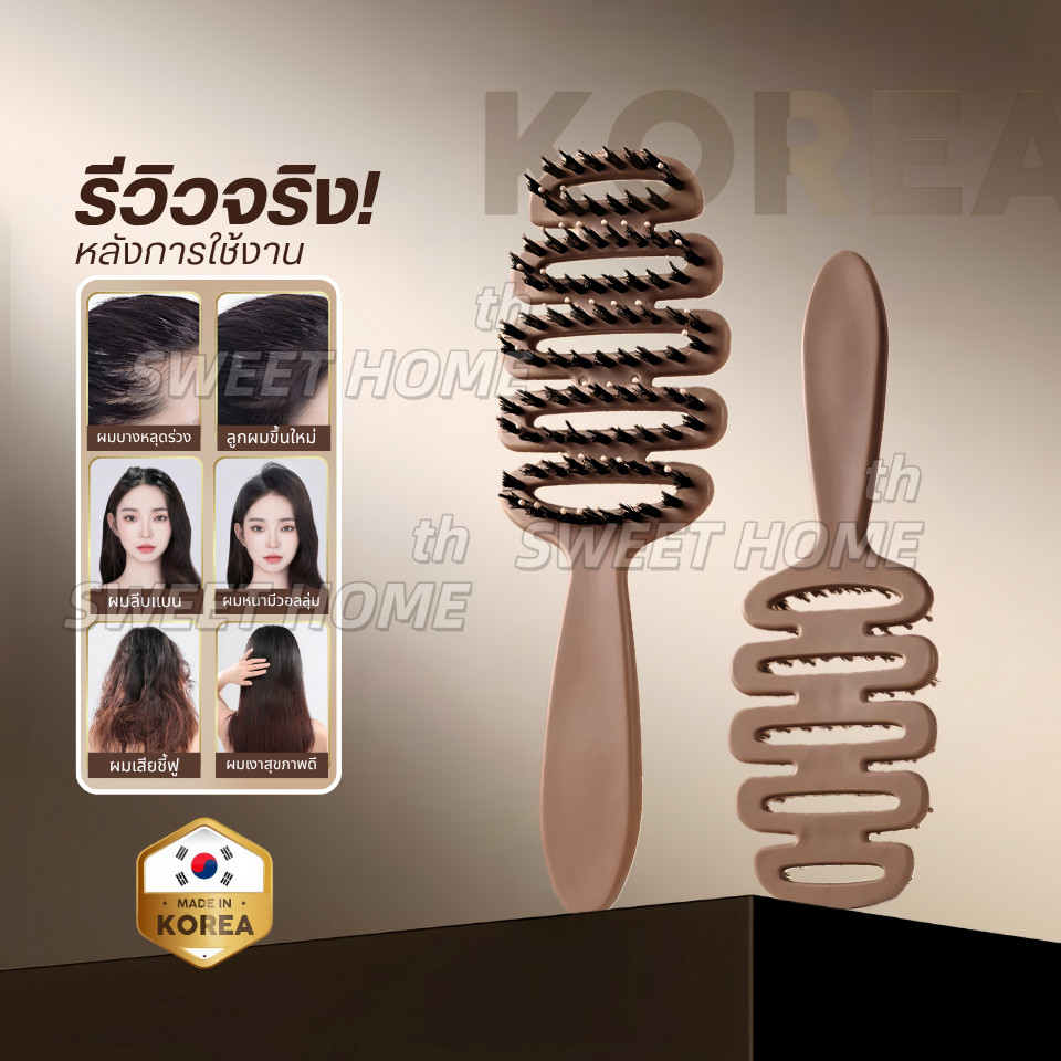 หวีขนหมูป่าแท้ จากเกาหลี หวีลดผมร่วง แก้ผมพันกัน ลดไฟฟ้าสถิตย์ หวียกโคนผม แปรงหวีผม Boar Bristle Hairbrush หวีพับ หวีผม
