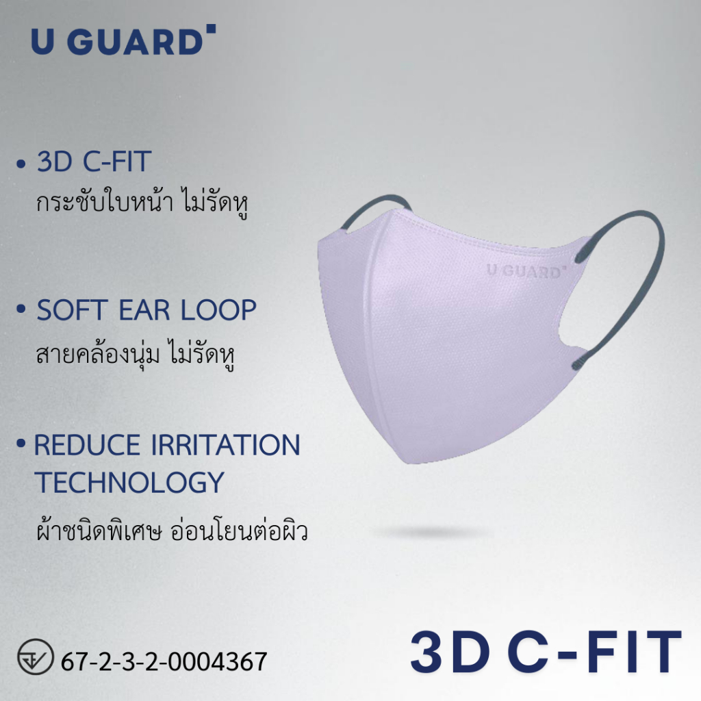 หน้ากากอนามัย U GUARD MASK ทรง V SHAPE สีม่วงอ่อน หายใจสะดวก สายคล้องนุ่ม ไม่รัดหู 30 ชิ้น / กล่อง