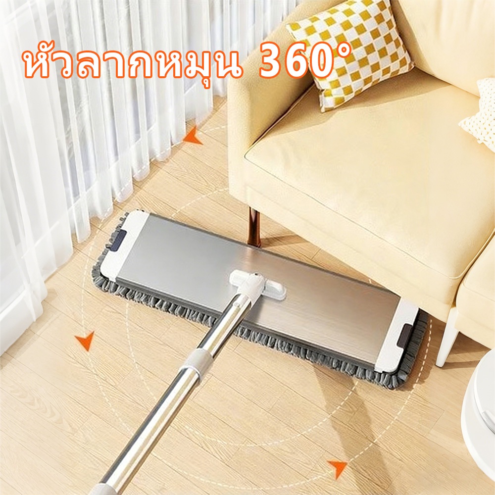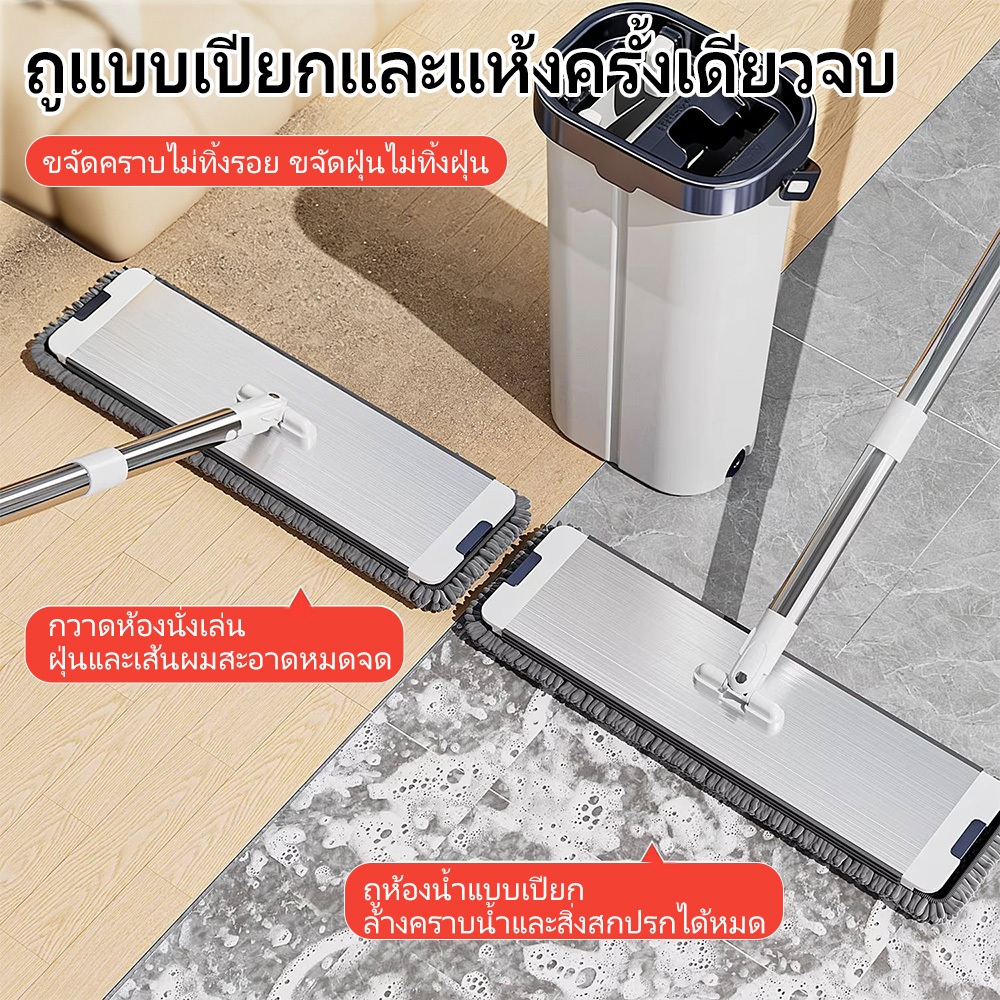 REALIDA ชุดไม้ถูพื้นพร้อมถังปั่น สแตนเลส Spin Mop แฮนด์ฟรี 2 หัวม็อบ ทนทาน ใช้ในบ้าน