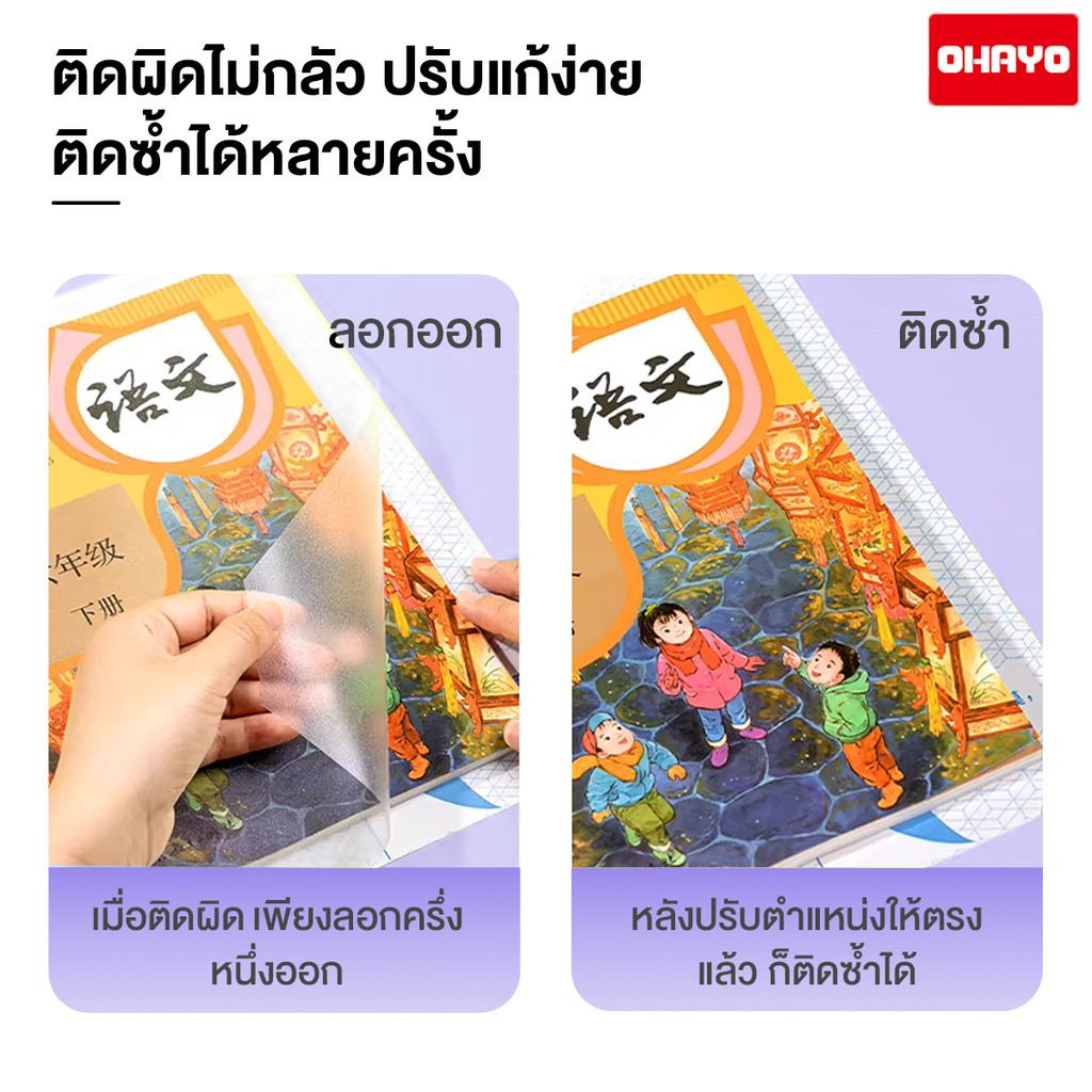 【Ohayo ของแท้】เคลือบปกหนังสือ ถนอมหนังสือ ห่อง่าย แถมฟรี สติ๊กเกอร์ชื่อ 3-in-1 พลาสติกใสกันน้ำ มีลายให้เลือกเยอะมาก