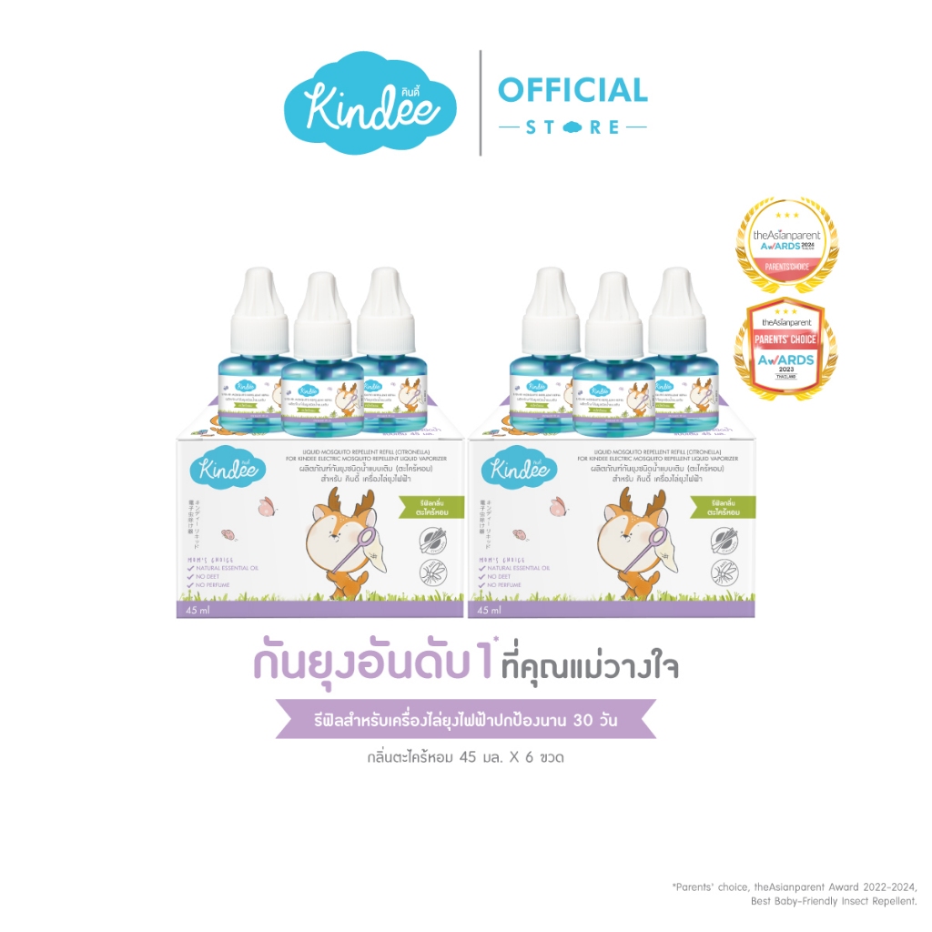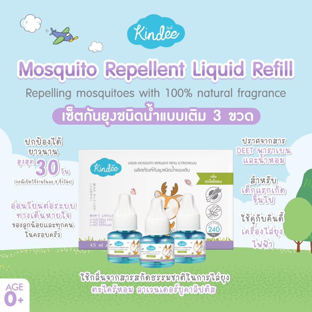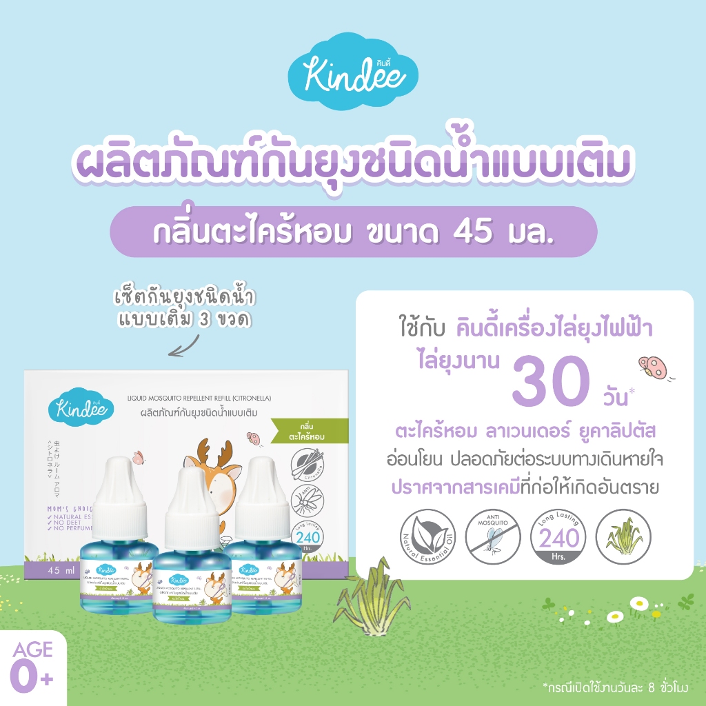 [ต่อชิ้นถูกชัวร์] Kindee คินดี้ ผลิตภัณฑ์กันยุงชนิดน้ำแบบเติม สำหรับเครื่องไล่ยุงไฟฟ้า กลิ่นตระไคร้หอม (45 มล.)