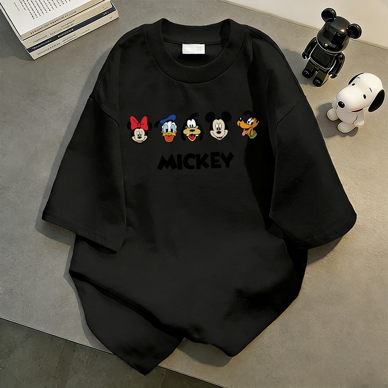 LABZAA เสื้อยืดแขนสั้นคอกลม✨วินเทจฟอกน้ำ oversize ลายพิมพ์การ์ตูน Mickey Mouse ระบายอากาศ YG505