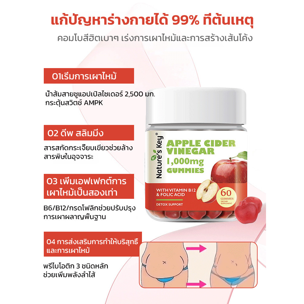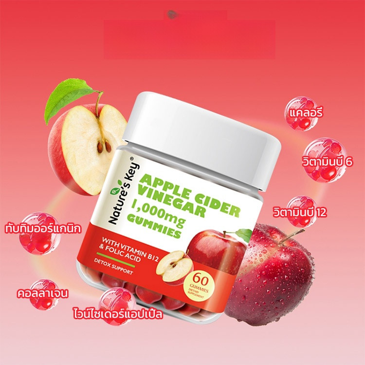 Apple Cider Vinegar Gummy อาหารเสริมน้ำส้มสายชูแอปเปิล ช่วยดูแลรูปร่าง บำรุงร่างกาย 60 แคปซูล