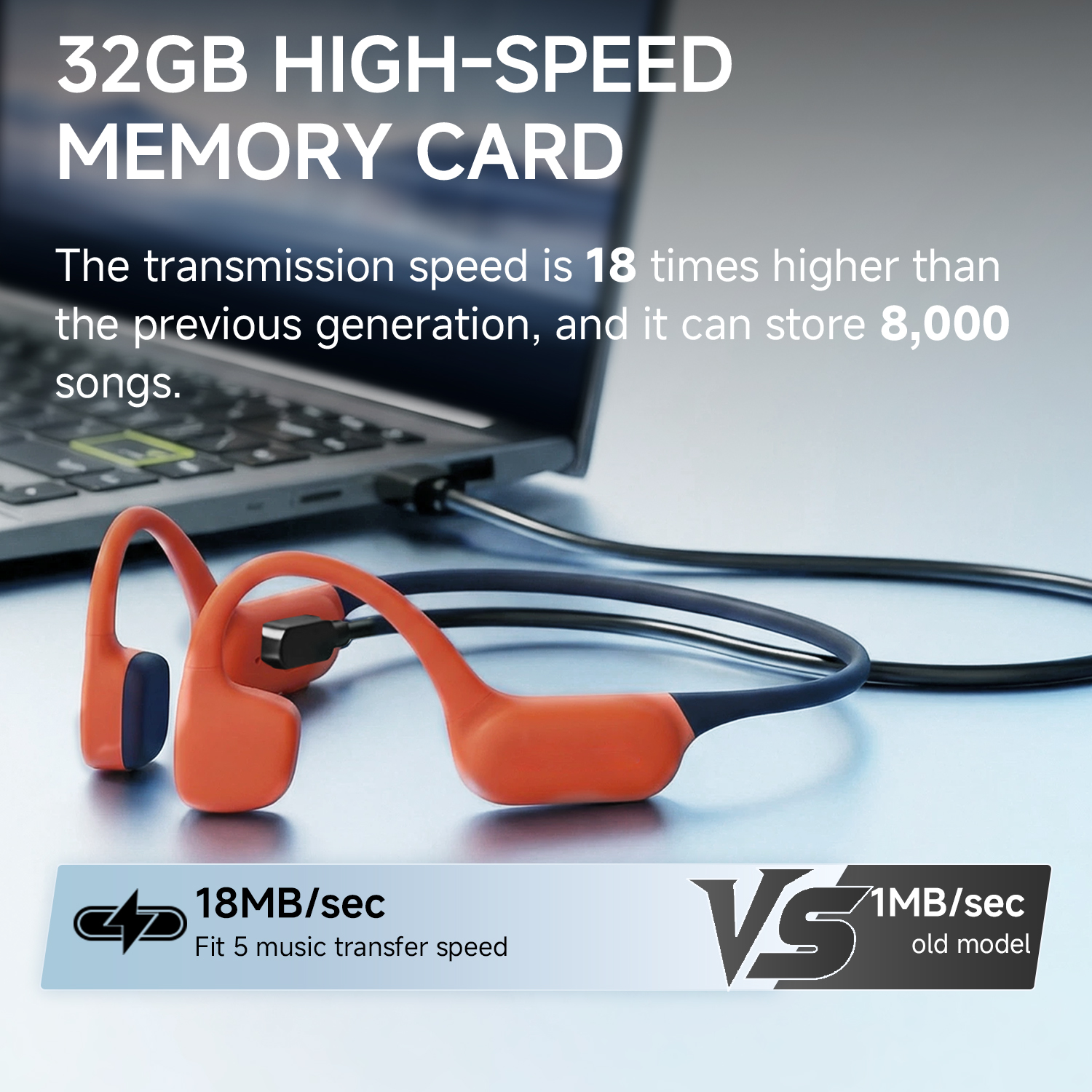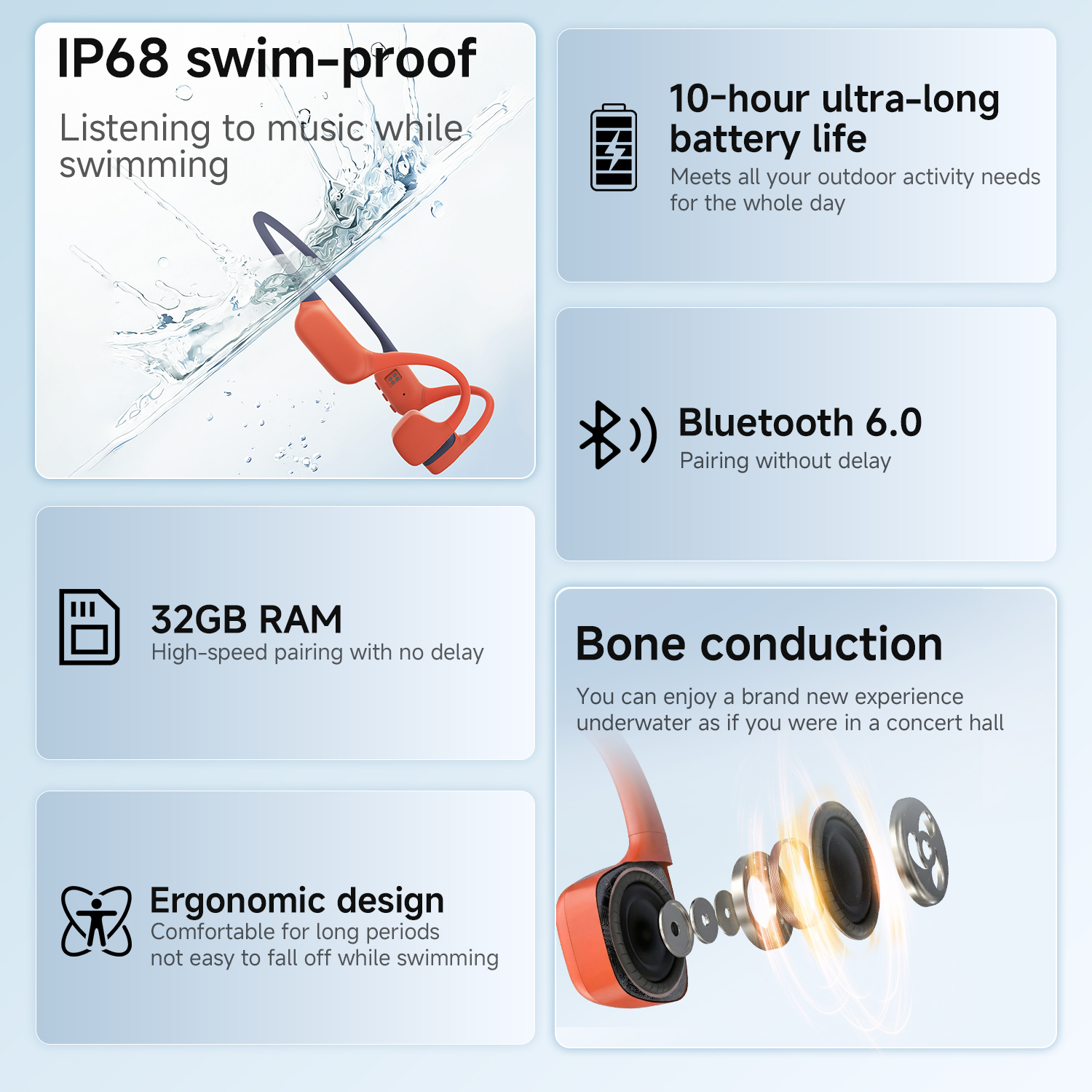 RHYFELL FIT 5 หูฟังไร้สายบลูทูธ 6.0 Bone Conduction หูฟัง IP68 กันน้ํา 10H อายุการใช้งานแบตเตอรี่ MP3 หน่วยความจําวิ่งขี่จักรยานชุดหูฟังเปิดหู