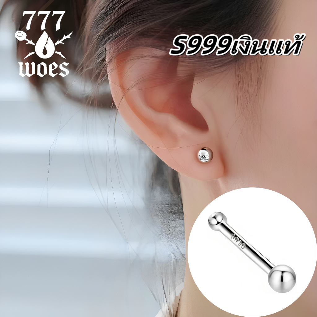 S999เงินแท้หัวกลมต่างหูแท่งจิวจมูกแวววาวไม่แพ้สไตล์เกาหลีใส่ง่ายถอดสะดวกแบบพื้นฐานใส่นอนได้เพชรCZ