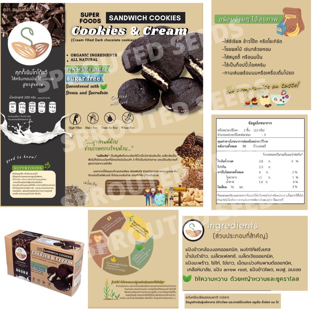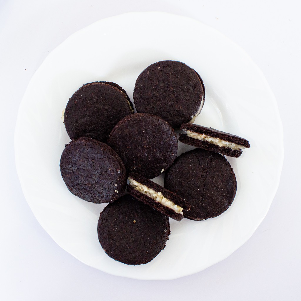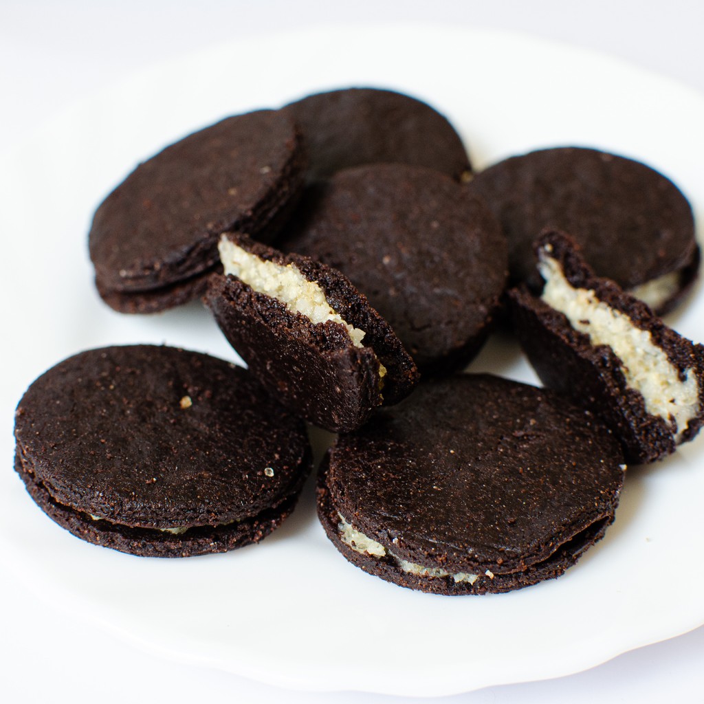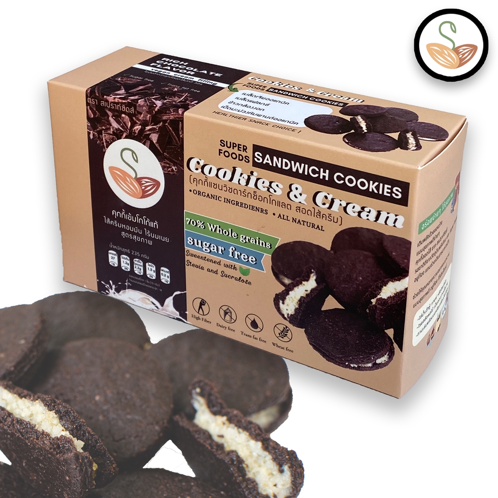 คุกกี้แซนวิชรสดาร์กช็อกโกแลต สอดไส้ครีม Clean sandwiches cookies ขนมคลีน แคลอรี่ต่ำ (กล่อง)
