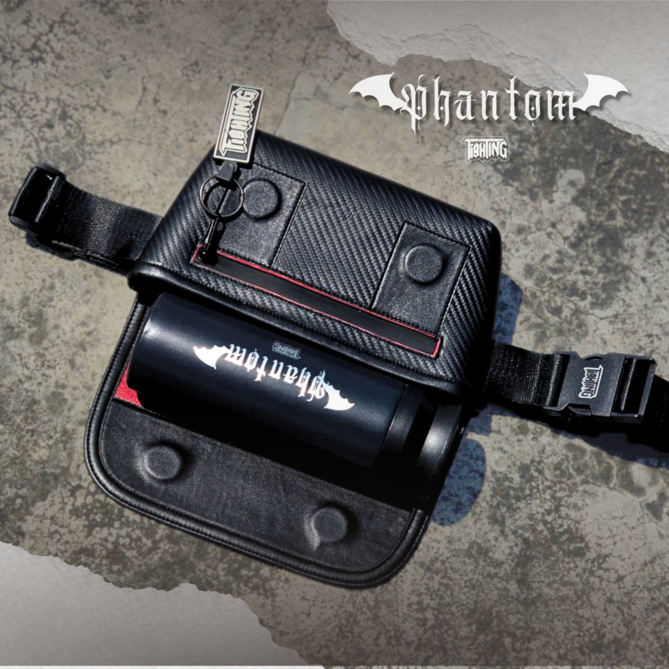 FIGHTING กระเป๋าคาดอก PHANTOM 9" หนังหุ้มคาร์บอน 3D All Black Carbon New Collection หนังเคลือบเงา ( พร้อมกล่อง )