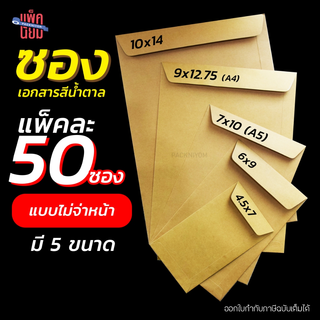 ซองน้ำตาล ซองเอกสาร ไม่มีจ่าหน้า (แพ็ค 50)