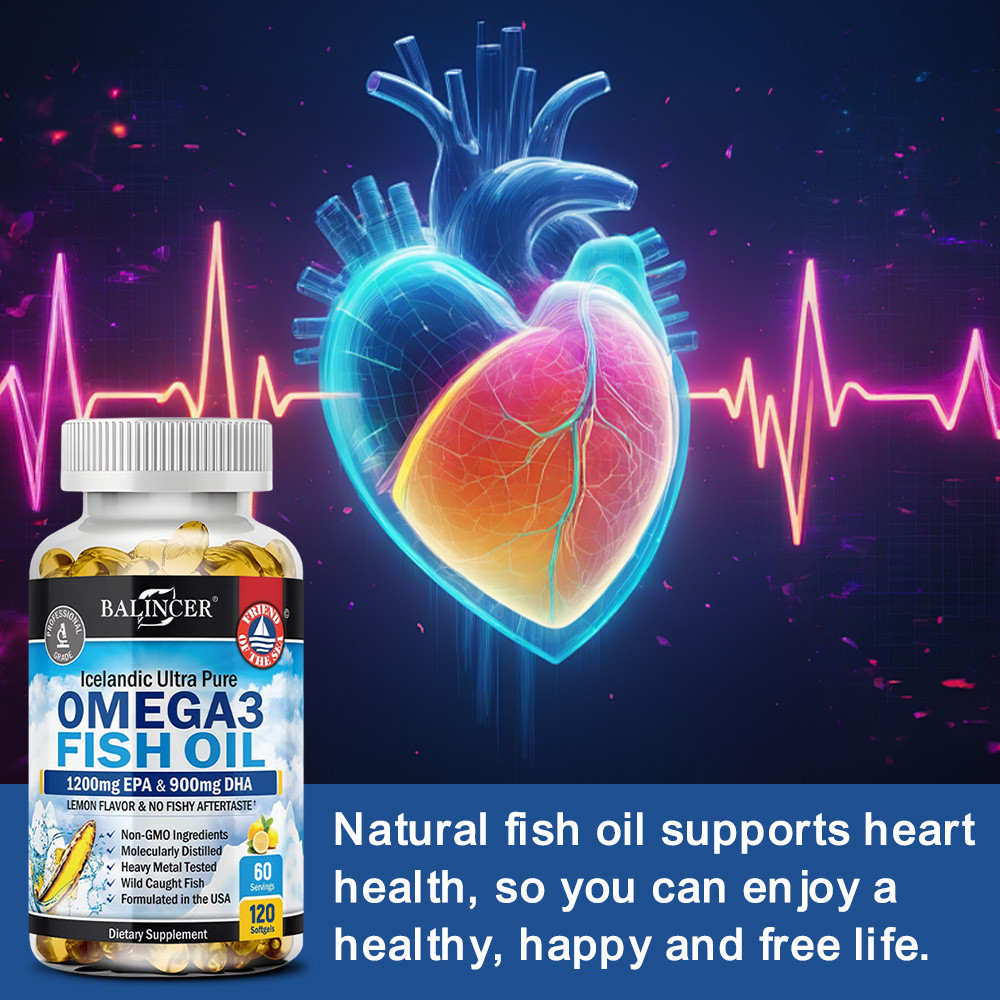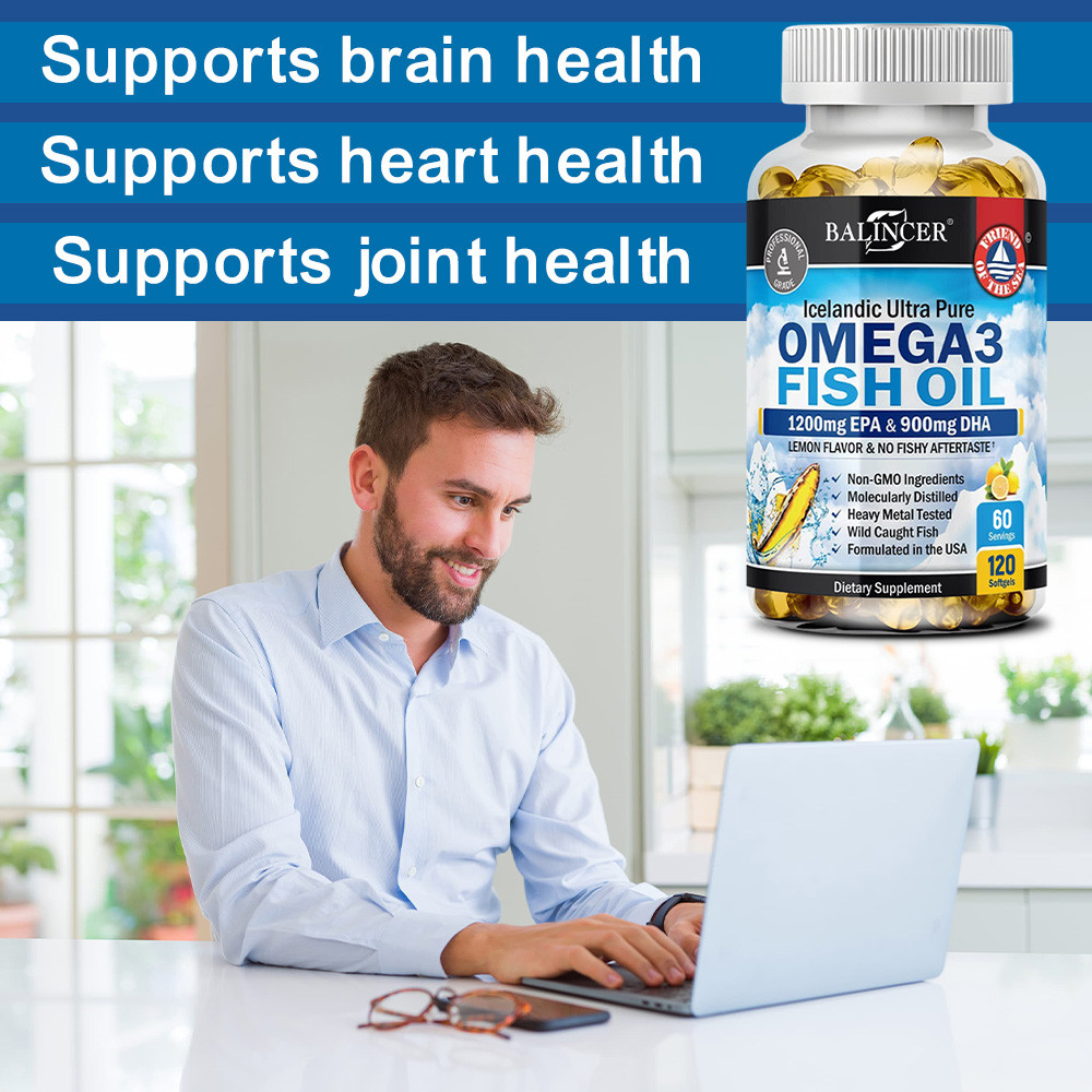Balincer Fish Oil อาหารเสริม Omega-3 Softgels - รองรับการทํางานของสมองและความจํา สมาธิ และสุขภาพหัวใจ