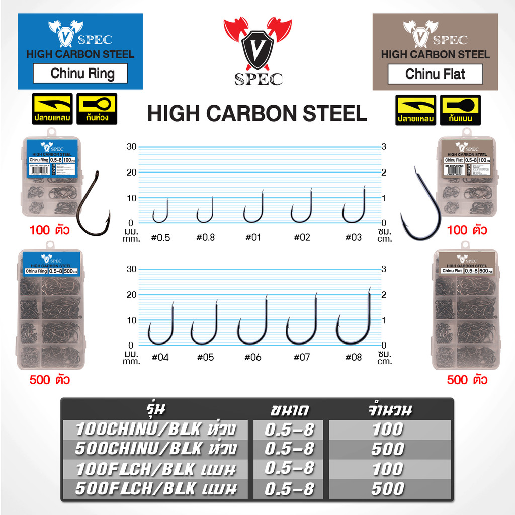 ตัวเบ็ด ISEMA แบบกล่อง 100 ตัว และ 500 ตัว ตะขอทางเดียว คละเบอร์