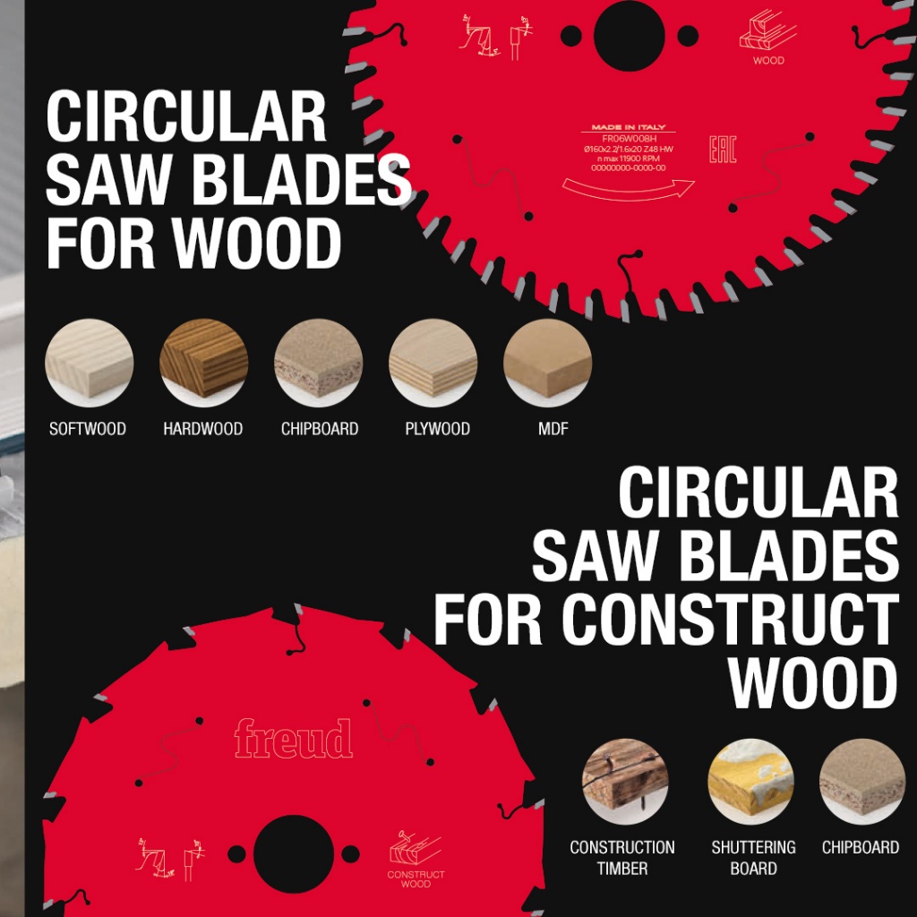 Freud ใบเลื่อยวงเดือน 6/7/8/9/10/12/13/16 นิ้ว 24-60ฟัน ตัดไม้เนื้ออ่อน-แข็ง ไม้อัด Made in Italy