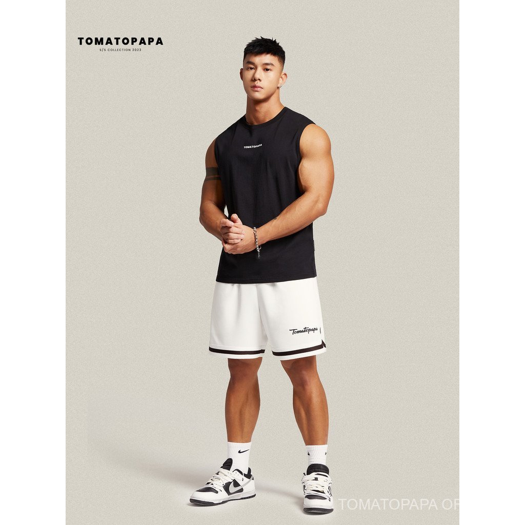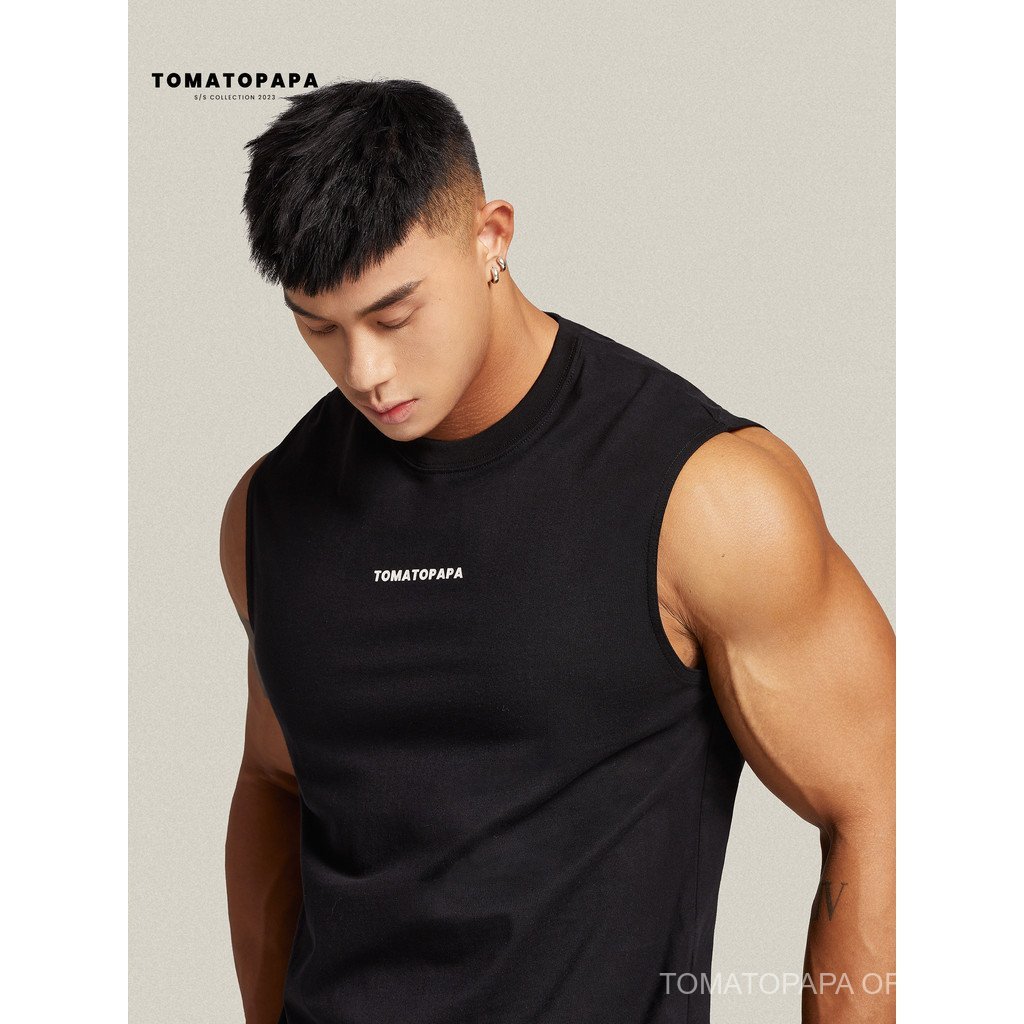 TOMATOPAPA Mens Simple Sports Vest-รอบคอเสื้อกั๊กแฟชั่นพิมพ์ตัวอักษร Basic All-Match แขนกุดฟิตเนสเสื้อกั๊กเสื้อกั๊ก