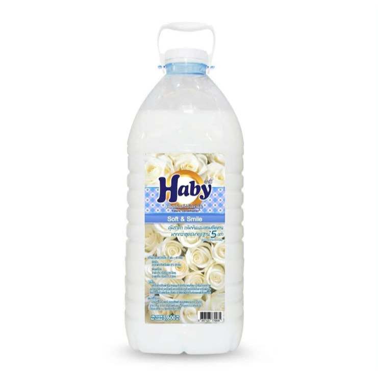 Haby น้ำยาปรับผ้านุ่ม (สีขาว) ขนาด 5600 มล กลิ่น Soft & Smile . แถมฟรี น้ำยาล้างจาน Qmax ขนาด 420 ml