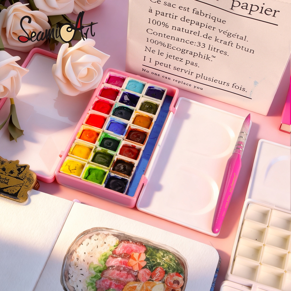 ซีไมอาร์ต เลียนแบบเคลือบเพชรจิตรกรรมกล่องกรณีการเดินทางที่มีแม่เหล็กครึ่งกระทะสําหรับสีน้ําสี แพคเกจย่อย