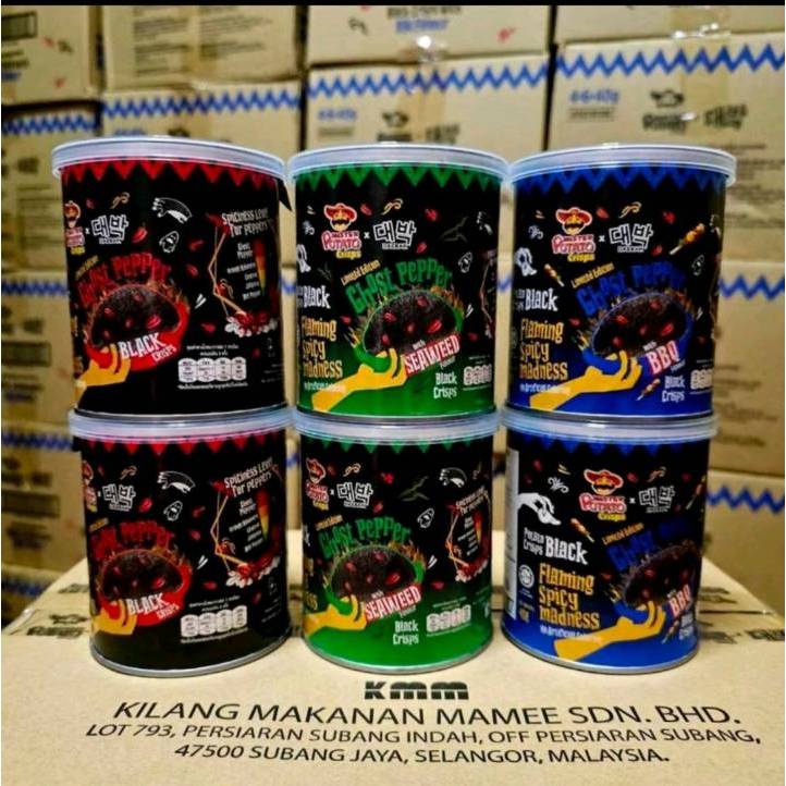 มันฝรั่งเผ็ดแผ่นดำPotato GHOST PEPPER 1ลัง 24กระป๋อง 40กรัมต่อ1กระป๋อง