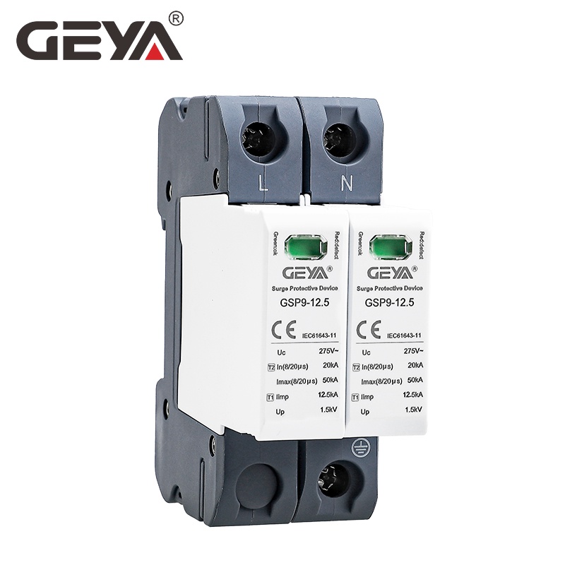 GEYA GSP9 12.5KA T1+T2 Class 50KA SPD 2P 1P + N Surge Protector 275VAC Din Rail House Surge Protector