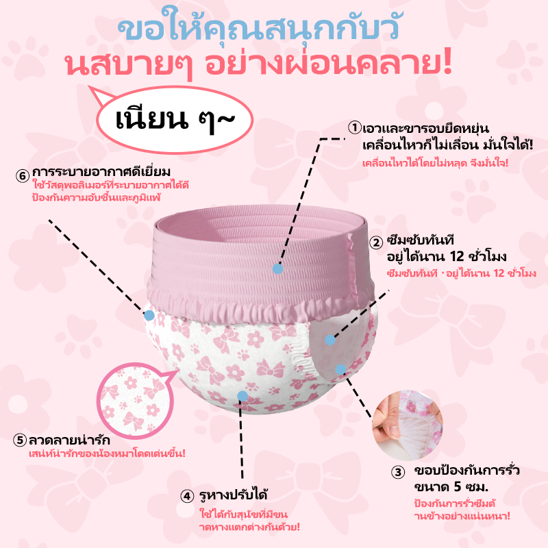 Dono Diapers 10/20/30/40PCS ผ้าอ้อมแบบดึงขึ้นน่ารักสําหรับผ้าอ้อมสุนัขหญิงและชาย XS-XL