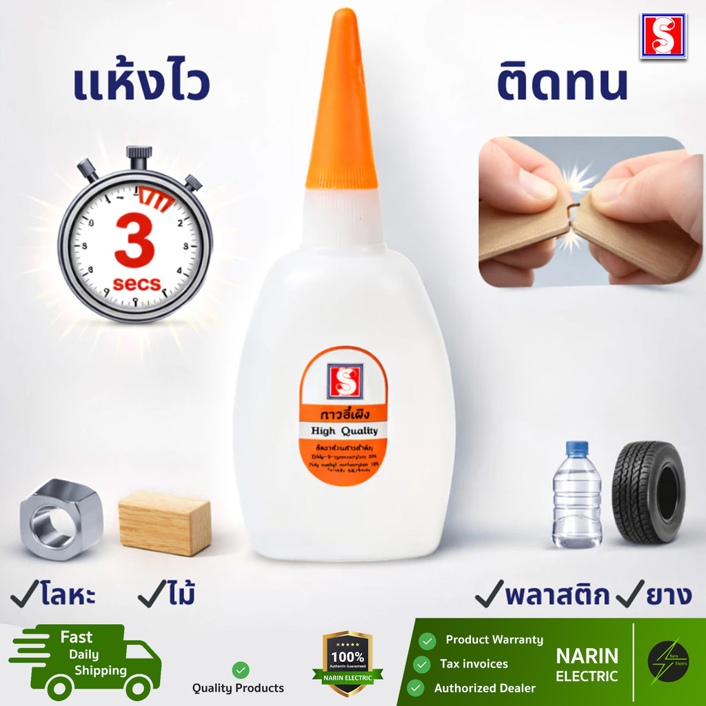 กาวร้อน อเนกประสงค์ (20g) | แห้งไว 3 วินาที ติดแน่นทนนาน | ไม้ พลาสติก โลหะ ยาง | Super Glue