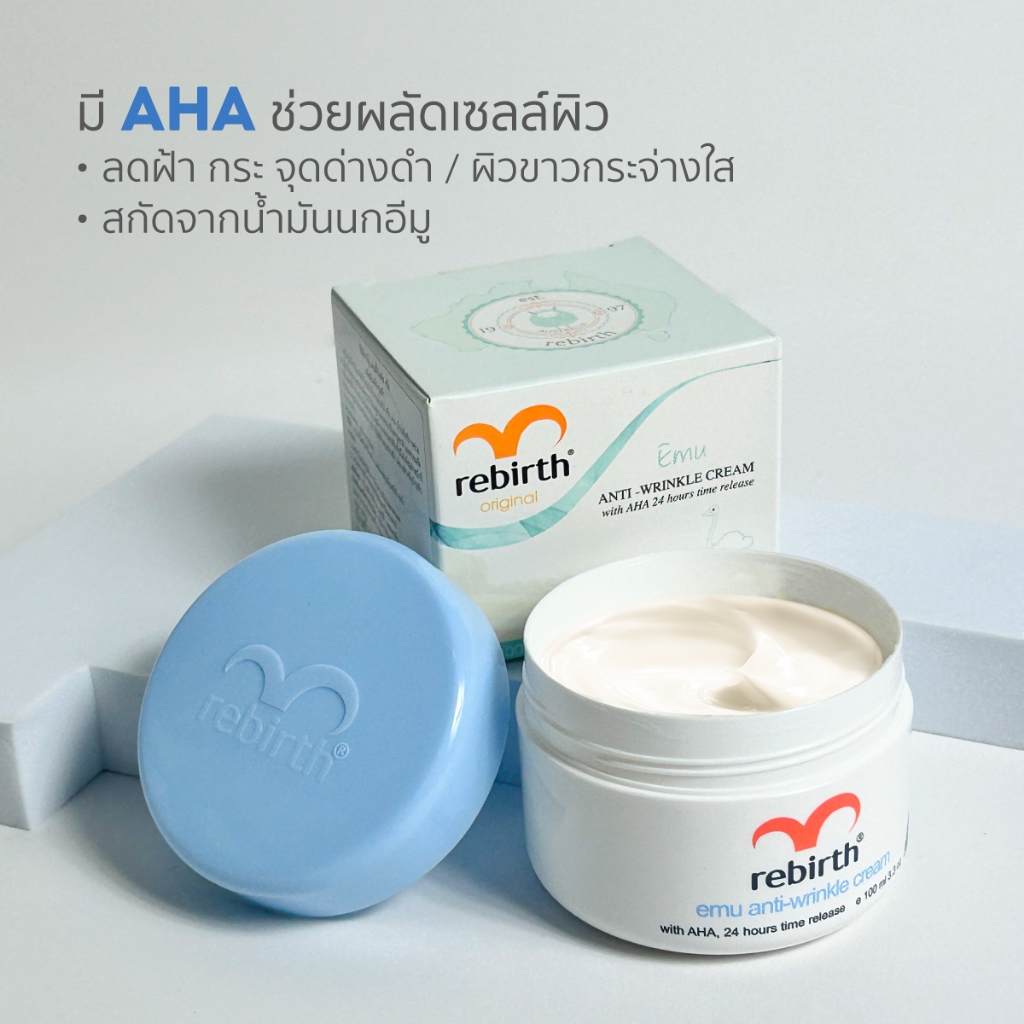 REBIRTH EMU ANTI – WRINKLE CREAM 100ML รีเบิร์ท ครีมอีมู ลดฝ้า กระ จุดด่างดำ แถมฟรี สบู่ล้างหน้า Alright