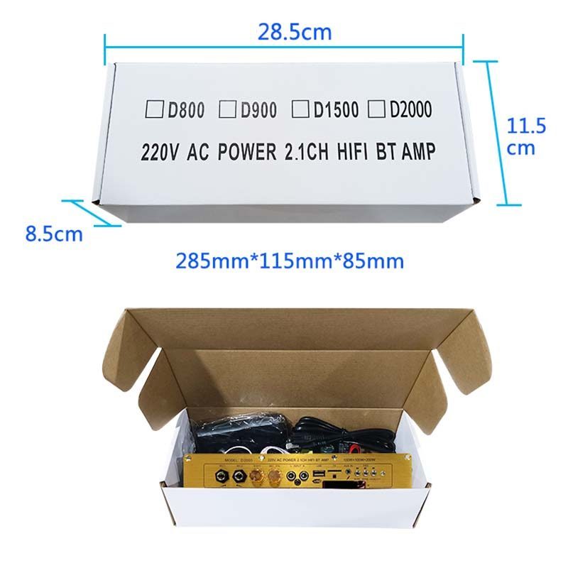 NEW แอมขยายเสียง D2000A D900 D1500 แอมป์จิ๋วบูทูส AUX/USB/TF บอร์ดขยายเสียงซับวูฟเฟอร์ POWER2.1CH HIFI AC220V/DC12-24V
