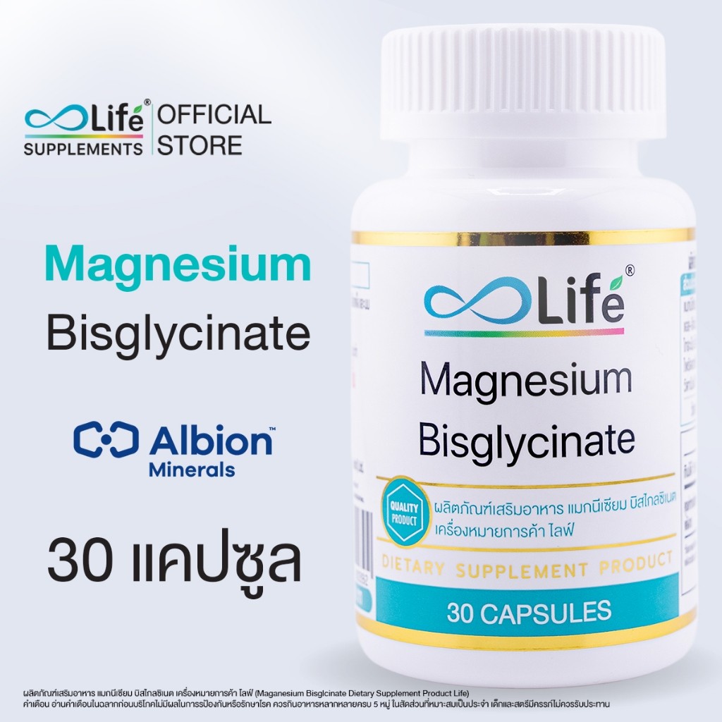 ตะคริว เหน็บชา Life Magnesium Bisglycinate 30 แคปซูล