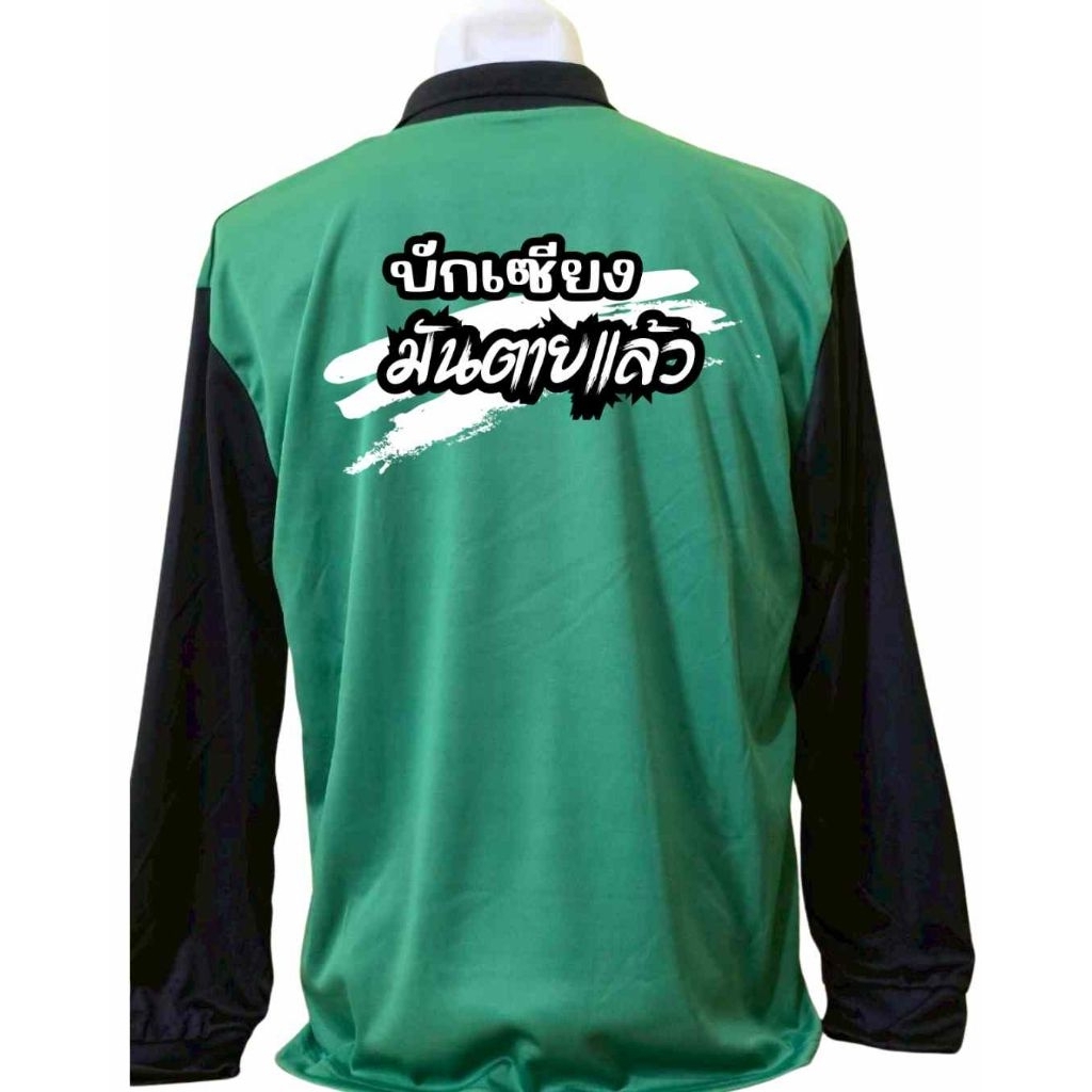 เสื้อแขนยาวคอปก เสื้อปุ๋ย เสื้อคนงาน ผ้าไมโคร ฟรีไซร์ สกรีนลาย บังเซียงมันตายแล้ว