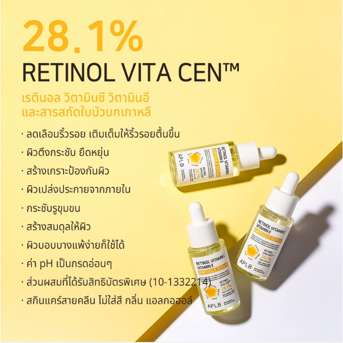 APLB [ลดริ้วรอย ผิวเด้ง] เซรั่ม เรตินอล วิตามินซี วิตามินอี แอมพูล RETINOL VITAMIN C VITAMIN E AMPOULE SERUM 40ML